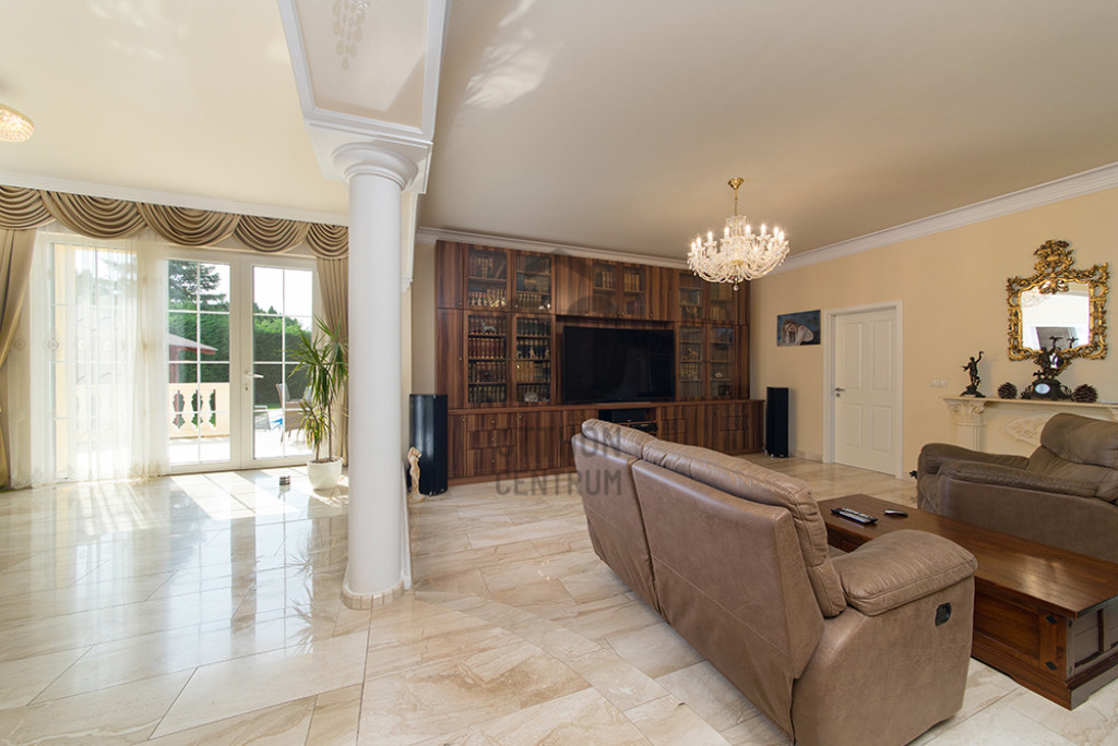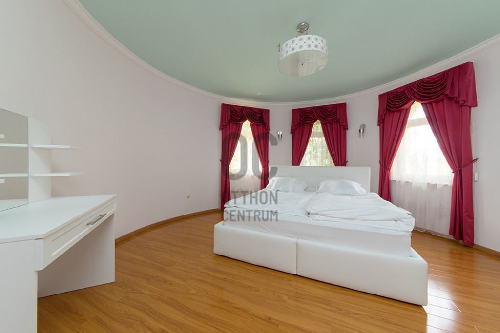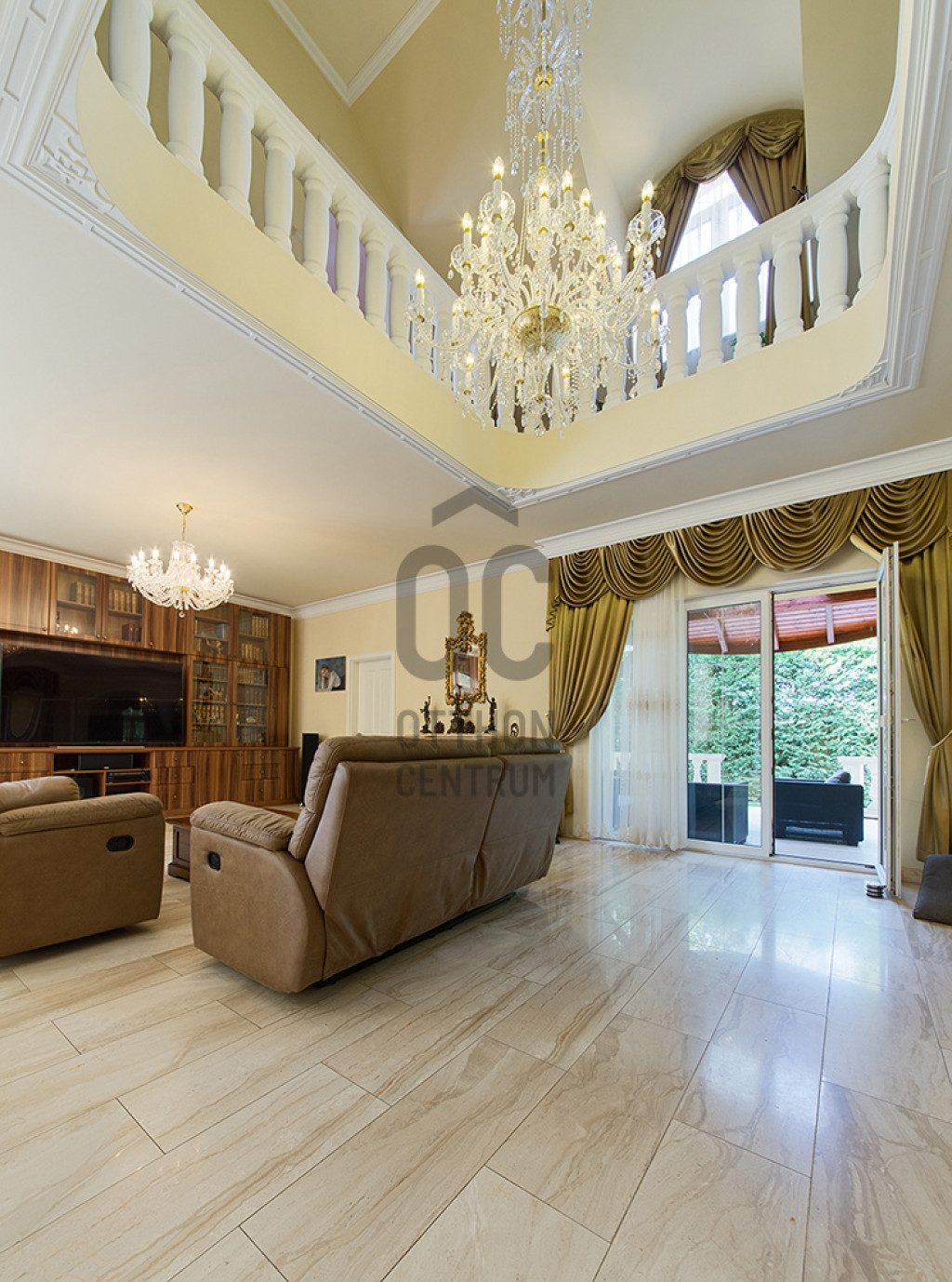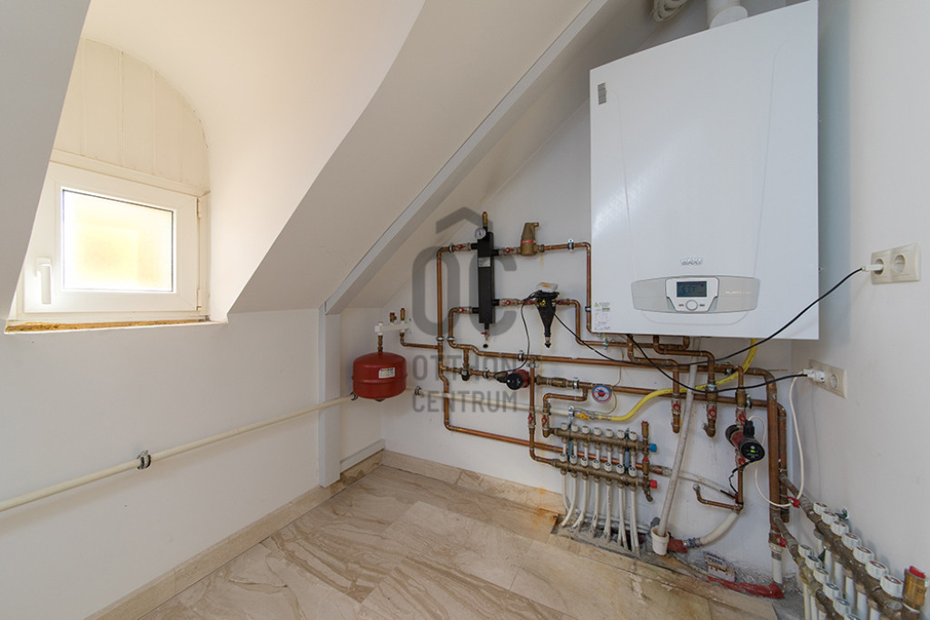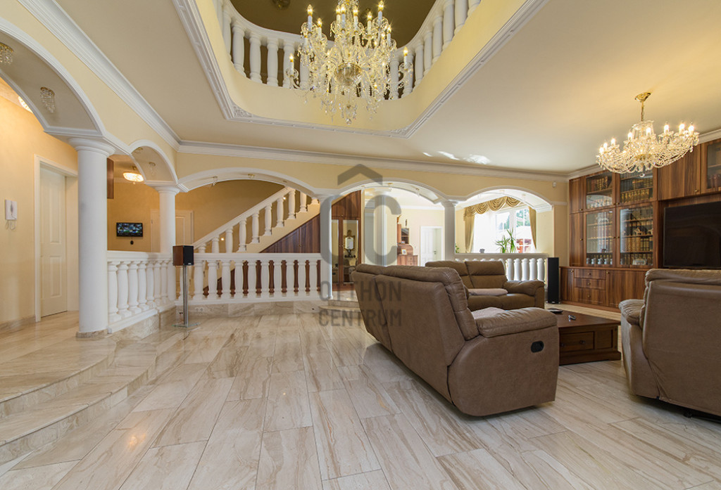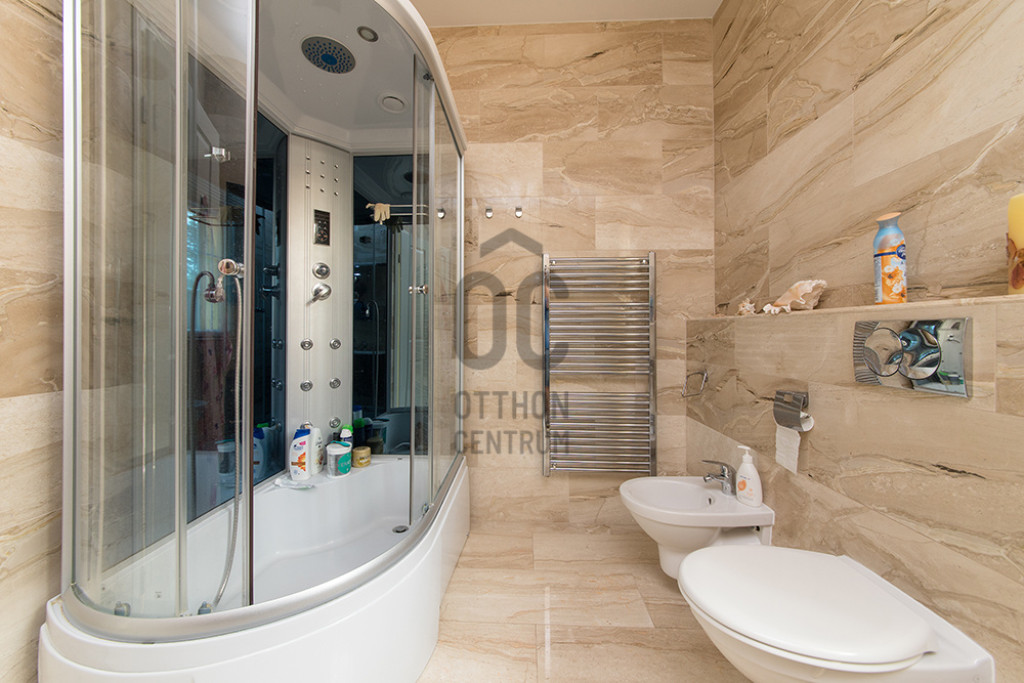 zöld növényekkel kerített, intim telken található, nettó 379 nm. alapterületű, 7 szobás, belső két szintes,