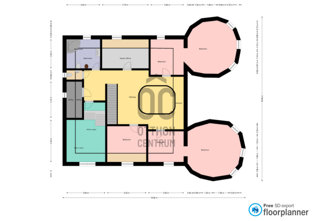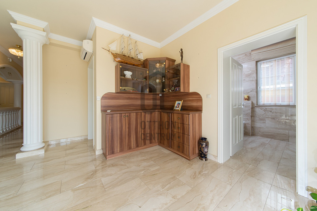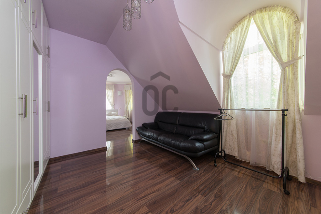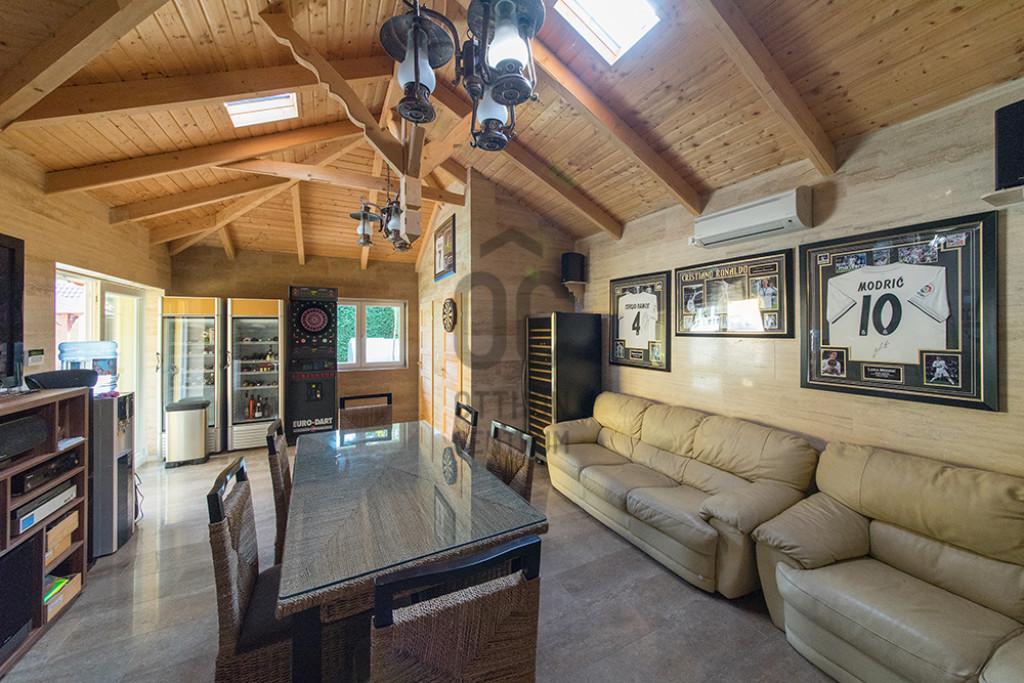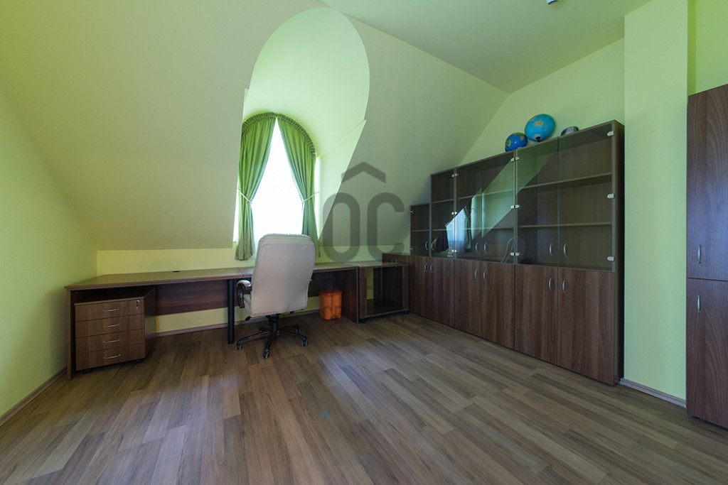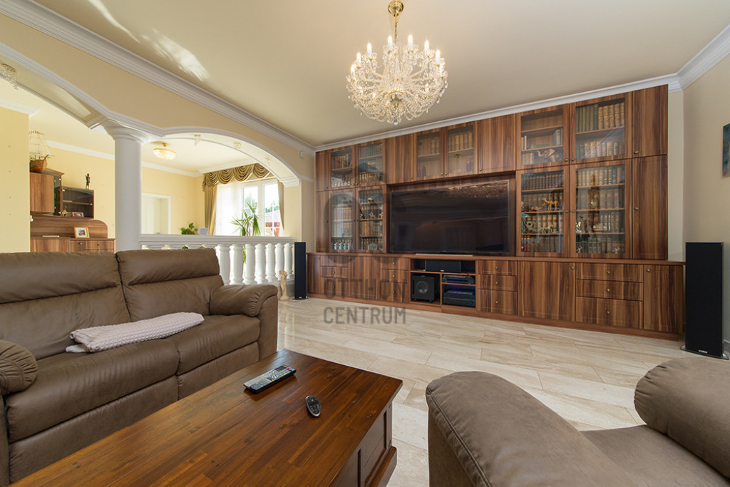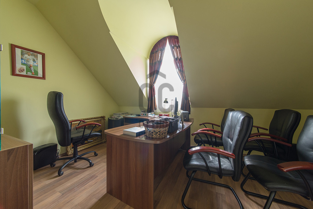 zöld növényekkel kerített, intim telken található, nettó 379 nm. alapterületű, 7 szobás, belső két szintes,