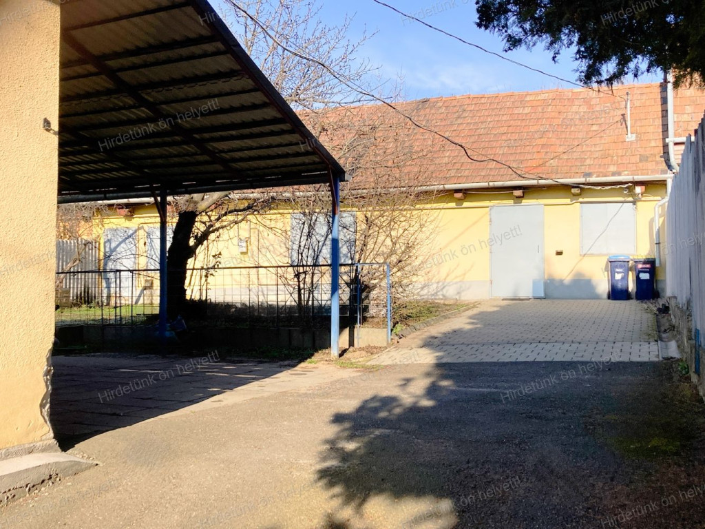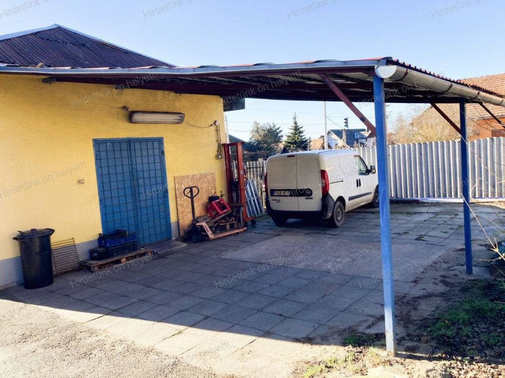 • A telekrészen található tégla építésű tároló épület 26,8 m2, illetve egy féltetővel fedett acél könnyűszerkezetes jármű parkoló 2 jármű részére.