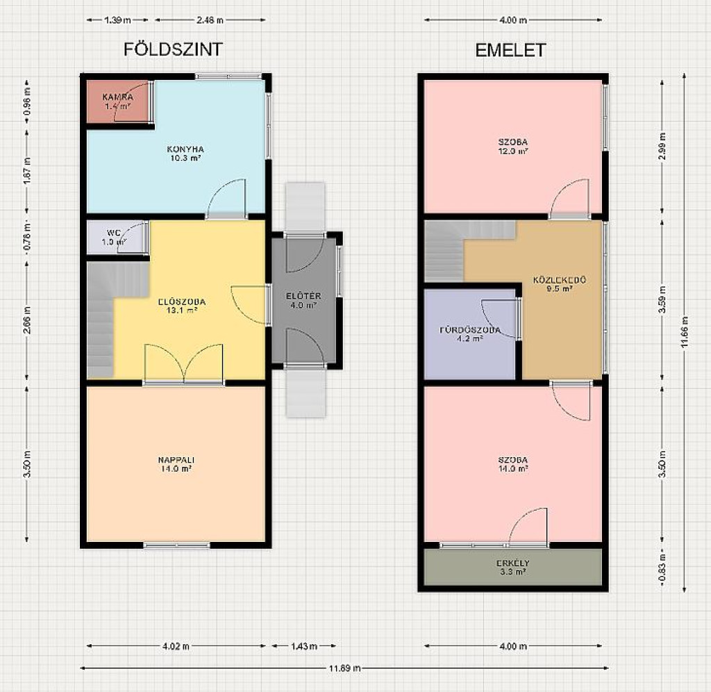 • 2 külön nyíló hálószoba