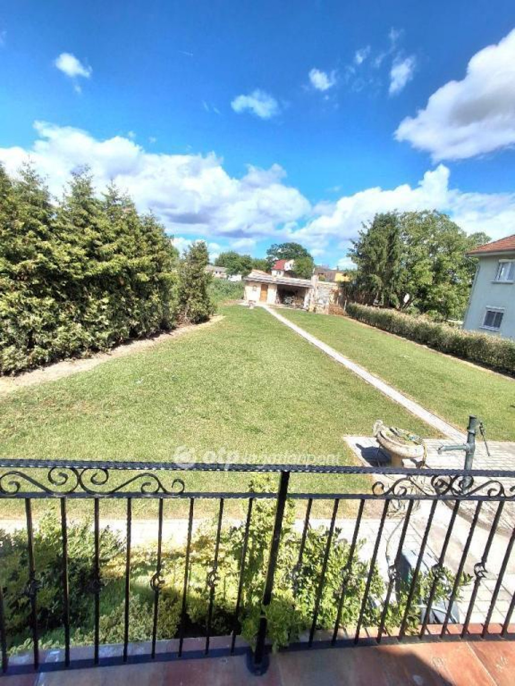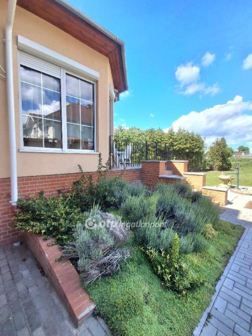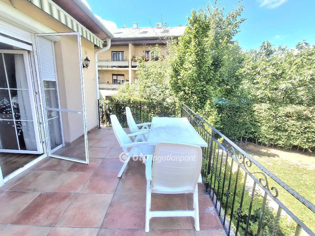 Szép napfényes a közlekedő, egy kis erkélyt is kialakítottak, ami szintén a gondozott kertre tekint.