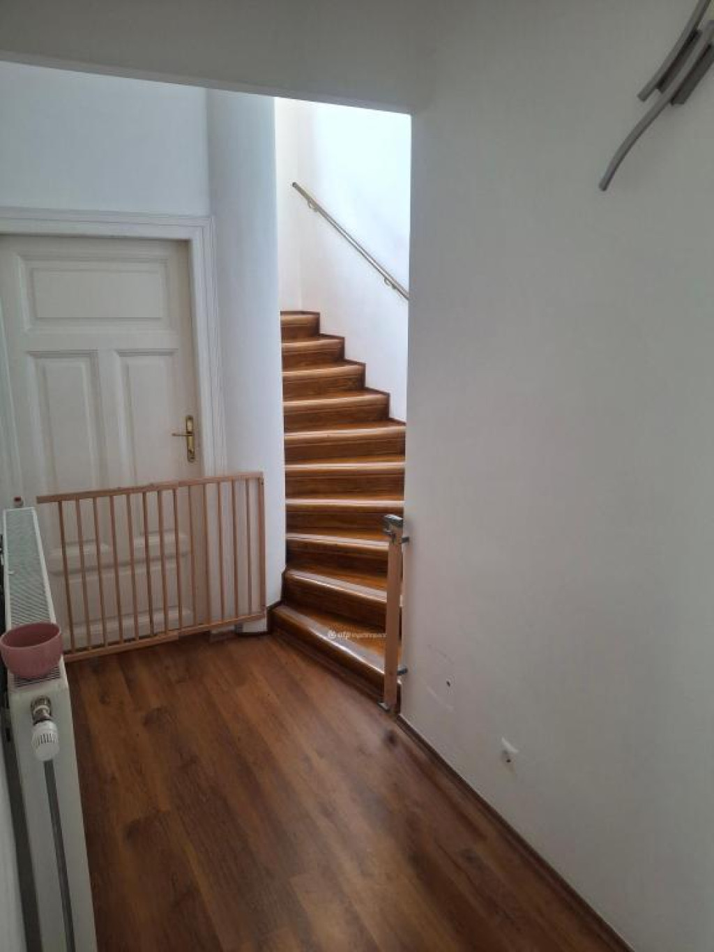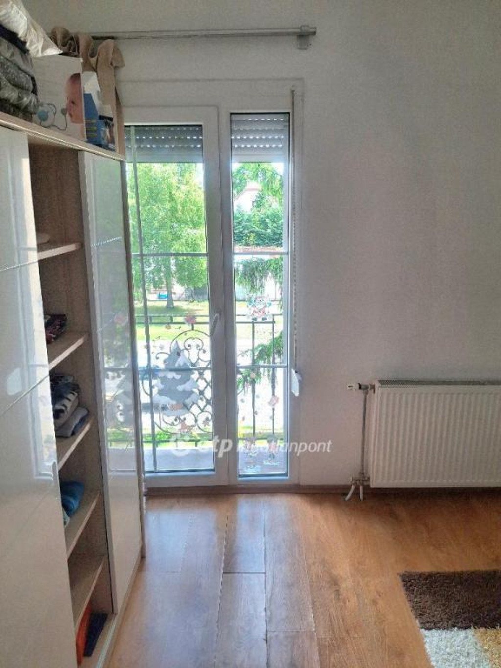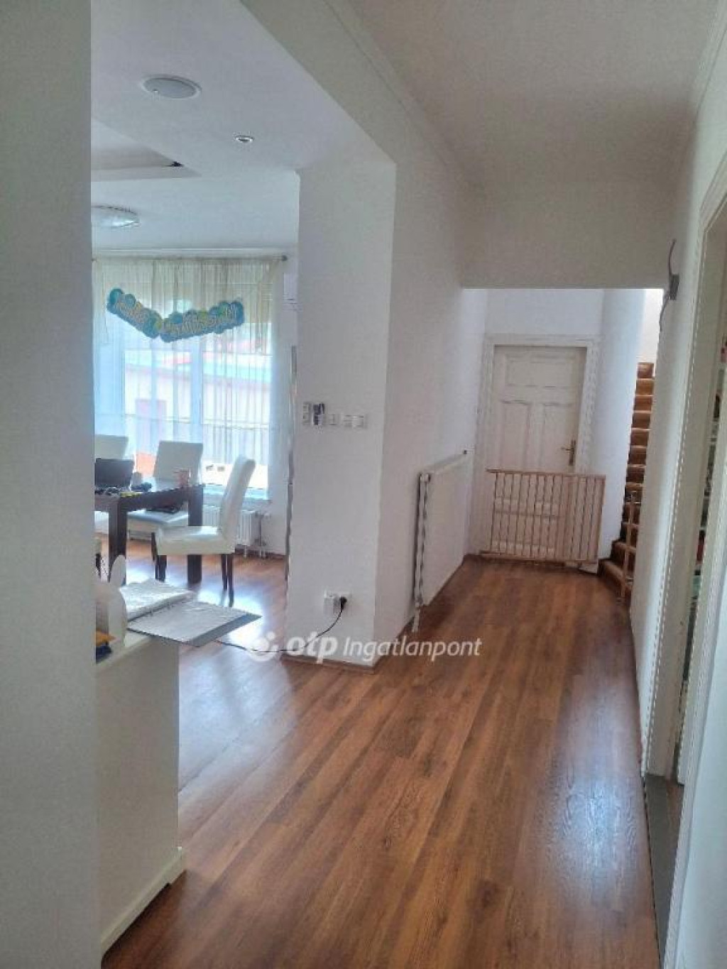 Szép napfényes a közlekedő, egy kis erkélyt is kialakítottak, ami szintén a gondozott kertre tekint.