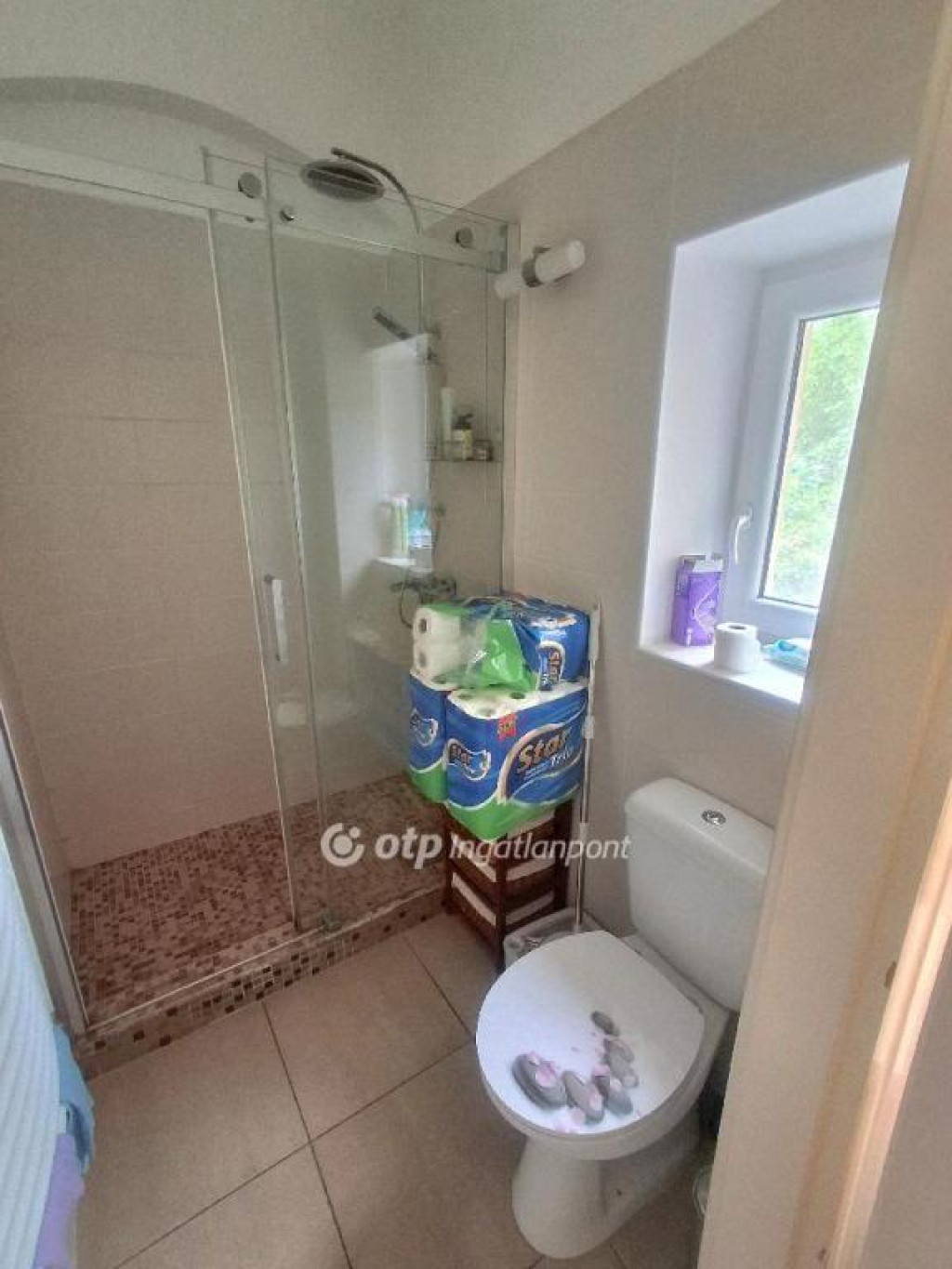 Minden ablakon szúnyogháló és redőny.