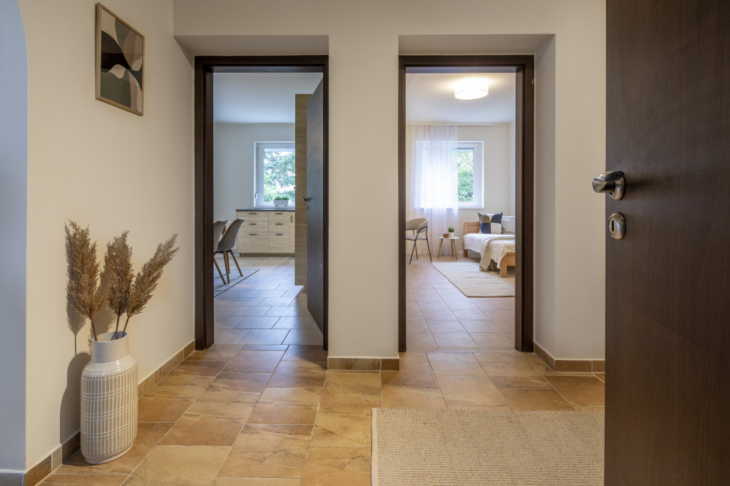 Megtörtént a víz-, gáz- és villanyvezetékek cseréje, külső-belső nyílászárók cseréje, modern gépészeti rendszerek kerültek beépítésre, az elektromos hálózat 3x20A.