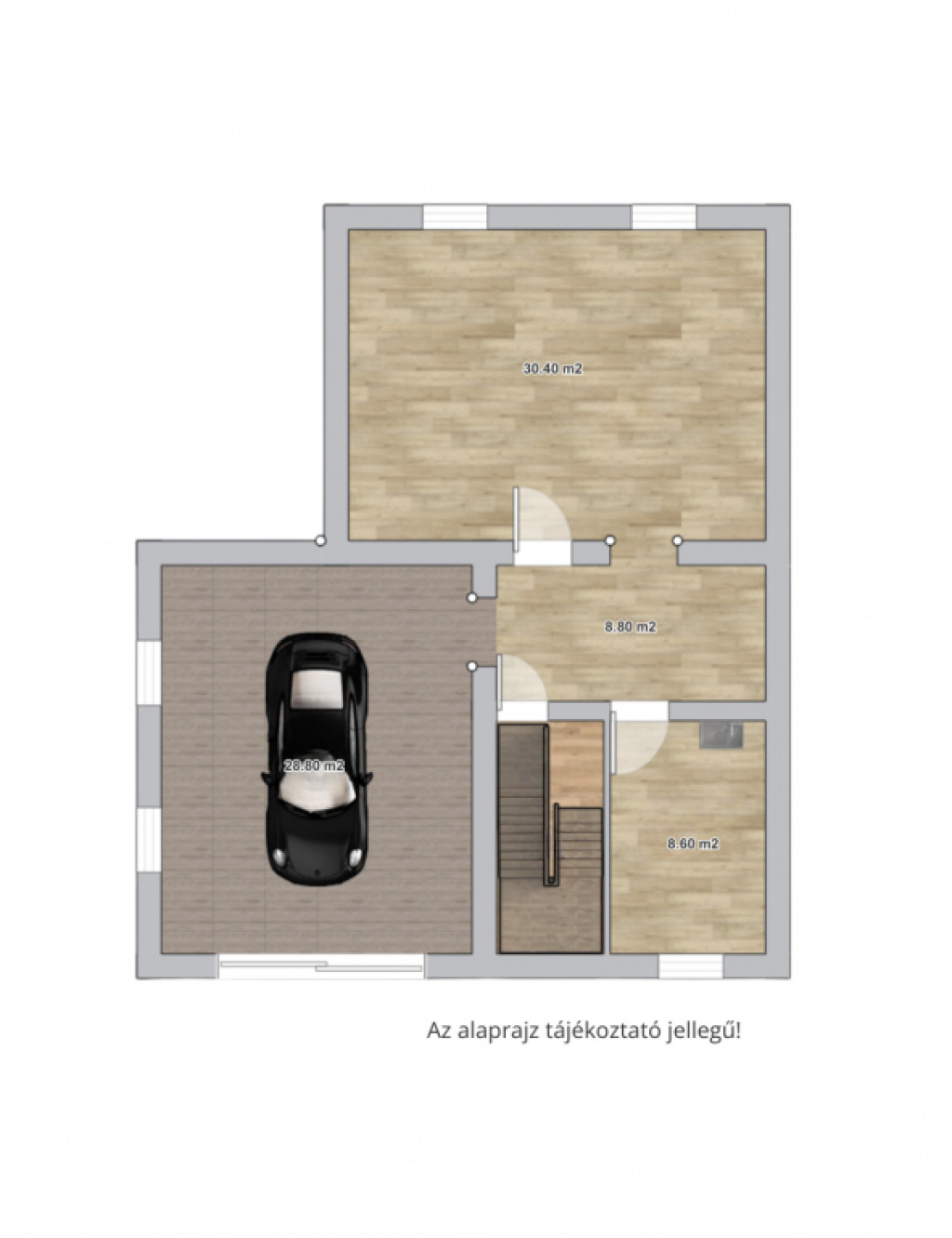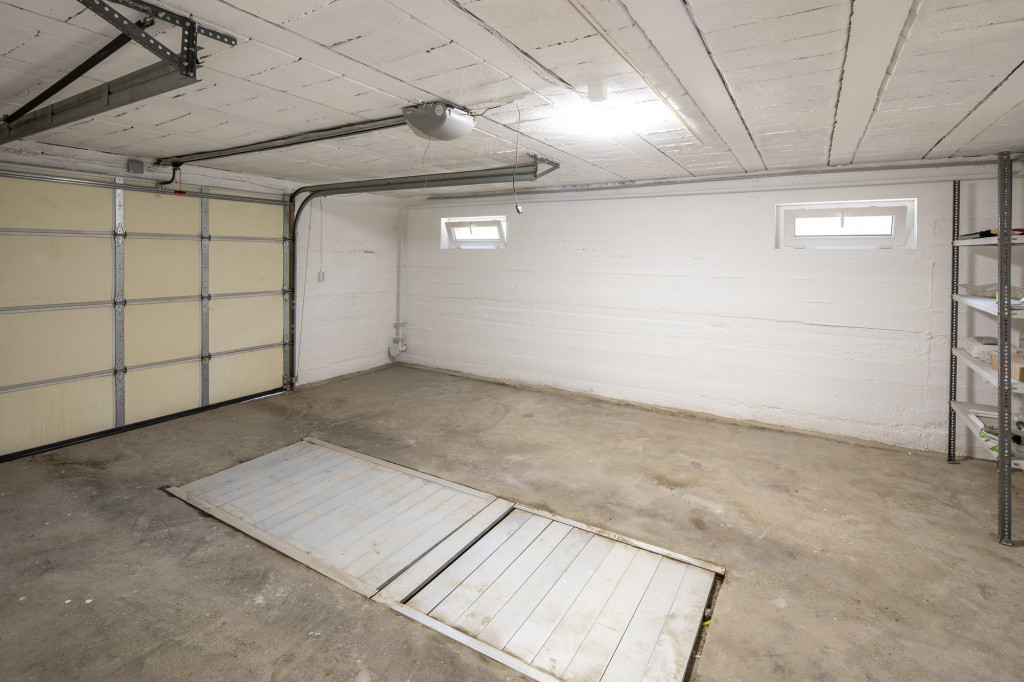 A ház szuterén szintje további 76,6 m², itt található a gépkocsitároló, praktikus szerelőaknával, valamint további tárolóhelynek, konditeremnek, szaunának, moziszobának vagy akár műhelynek alkalmas ablakos, fűthető tér.