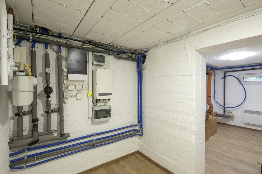 Az energiahatékonyságról modern kondenzációs kazán, 25 cm kőzetgyapot födémszigetelés, 38cm tégla + 12 cm grafitos dryvit homlokzati szigetelés, háromrétegű műanyag nyílászárók gondoskodnak. A ház napelemrendszere (régi szaldós elszámolással 2029-ig) nemcsak a teljes háztartást, hanem elektromos autó töltését is fedezi.