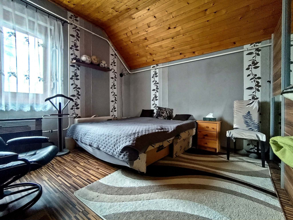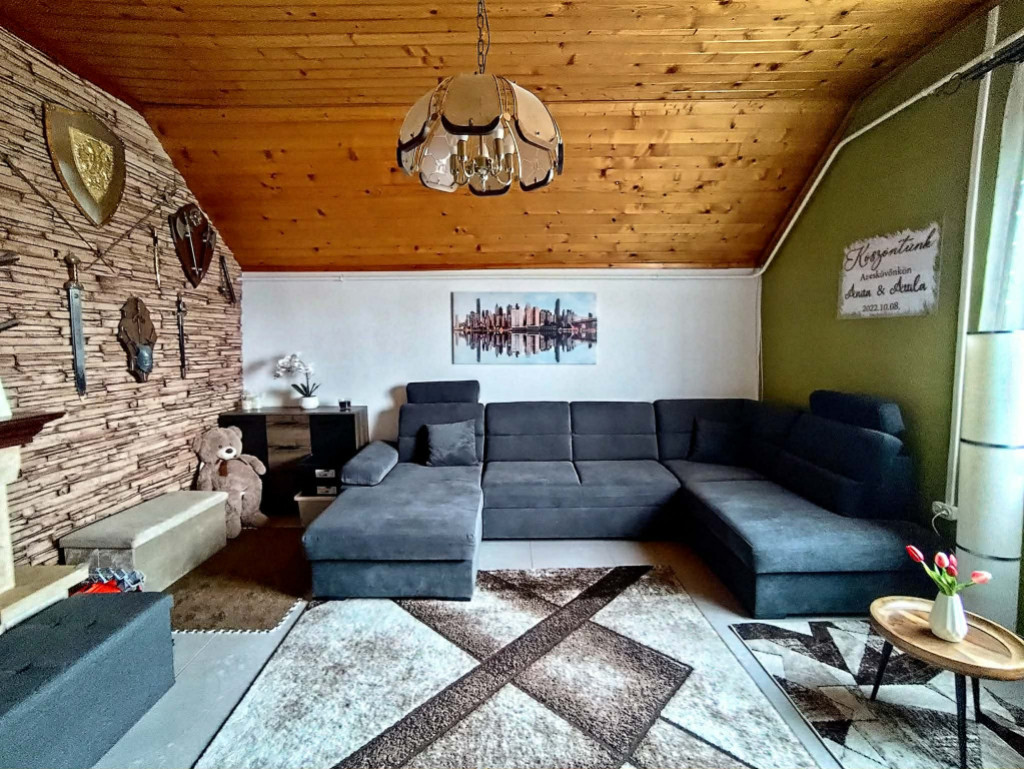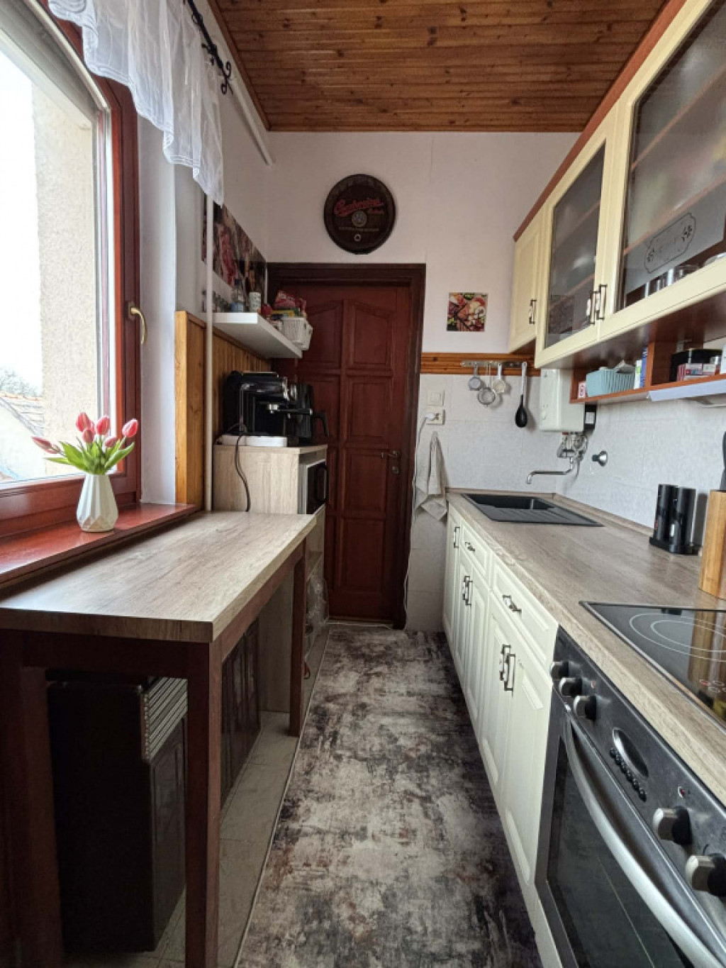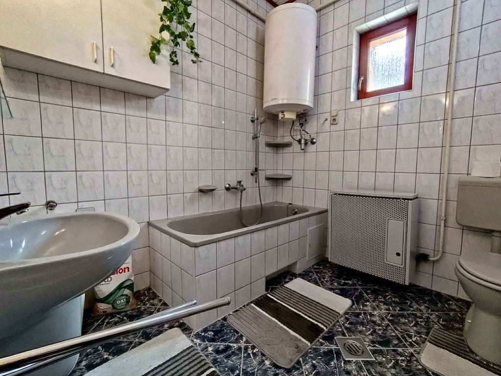 Fűtése gázkonvektorral megoldott, meleg vízről villanybojler gondoskodik.