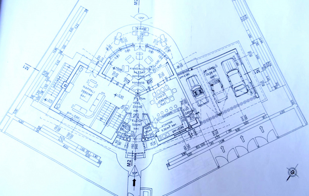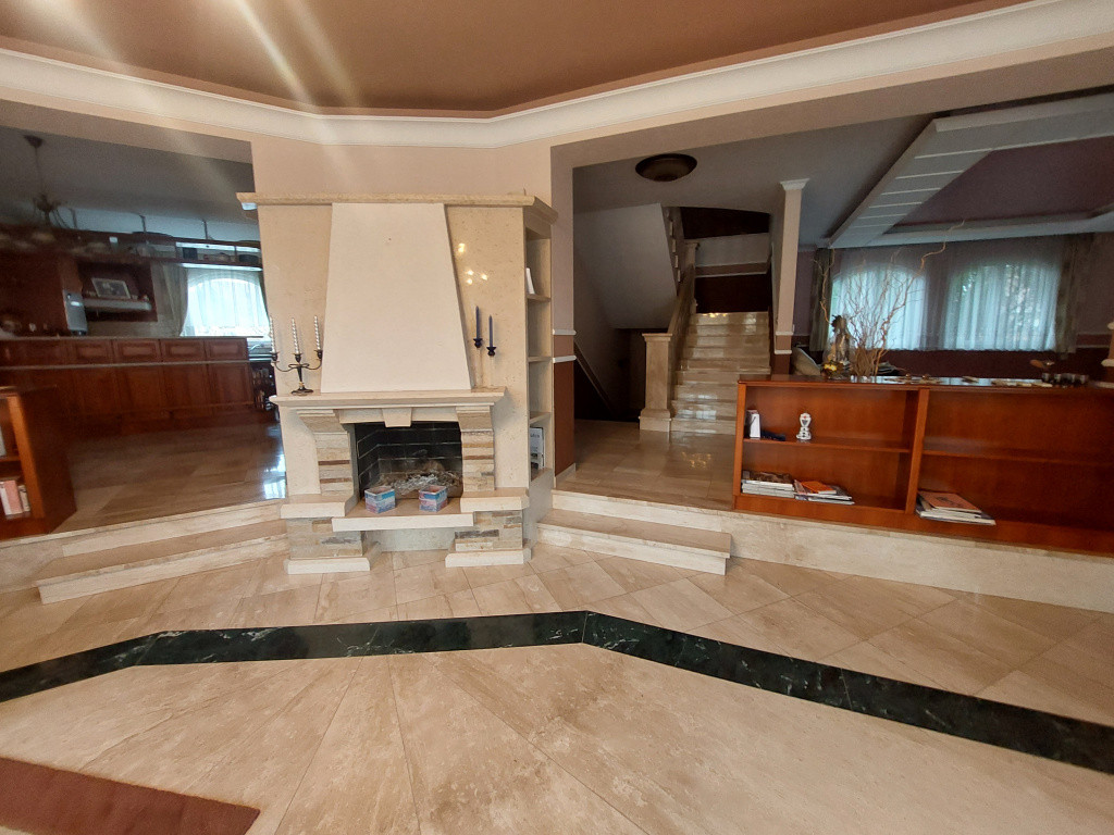 • klasszikus, kandallós szalon, mai megközelítéssel egy félköríves nappali közvetlen kertkapcsolattal