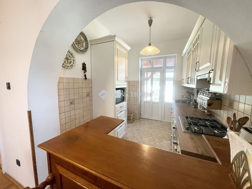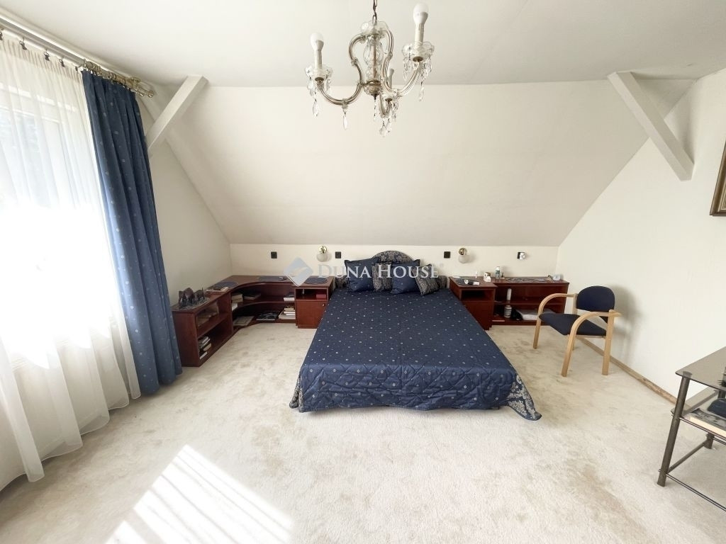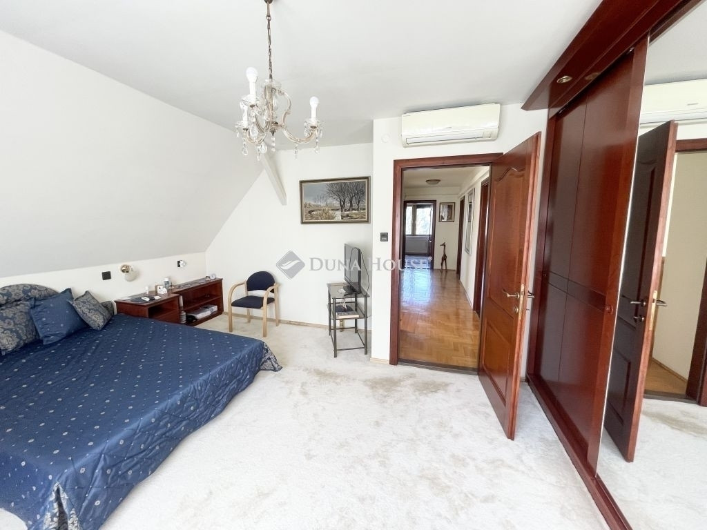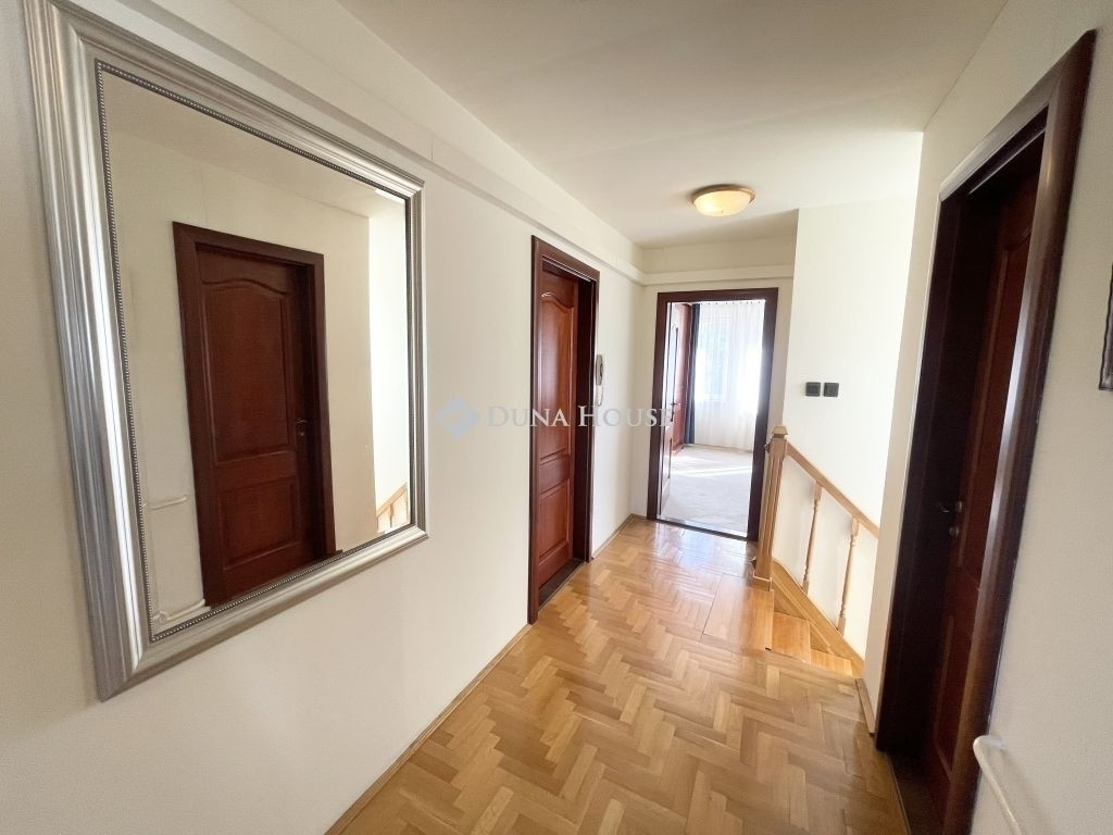 Medencés, 6 szobás családi ház nagy telekkel eladó Felső-RákoshegyenXVII. kerületben, Felső-Rákoshegy csendes, rendezett részén eladó egy 973 nm-es telken fekvő, önálló, 6 szobás családi ház, amely kiváló választás lehet nagyobb család számára is. Az ingatlan jól átgondolt elosztású, tágas terekkel és nagy belmagassággal rendelkezik, így igazán kellemes, kényelmes otthont biztosít a mindennapokban. A földszinten egy világos, déli fekvésű nappali, egy nagy méretű hálószoba, étkező, teraszkapcsolatos konyha, kamra, zuhanyzós fürdőszoba és előszoba található. Az emeletre kényelmes lépcső vezet, ahol további 4 szoba, egy kádas fürdőszoba és egy külön mellékhelyiség került kialakításra.A ház a 90-es évek végén nyerte el jelenlegi formáját, azóta pedig több felújítás és korszerűsítés is történt. A fűtést és a használati melegvizet egy 2022-ben beszerelt kondenzációs kazán biztosítja, emellett fatüzelésű kazán is rendelkezésre áll. A nyári komfortot 6 db klíma segíti. Az ingatlan hőszigetelt üvegezésű fa és műanyag nyílászárókkal felszerelt, a tetőtér szigetelése pedig néhány éve korszerű technológiával megújult. A biztonságról kiépített kamerarendszer gondoskodik. A 973 nm-es telken számos extra szolgálja a kényelmet: fűtött, gépesített medence, nagy garázs, térkövezett autóbeálló, kerti sütögető, valamint a kert végében egy kb. 100 nm-es műhely is található, amely igény szerint tovább hasznosítható, de akár el is bontható. A garázs különösen praktikus kialakítású: itt külön WC és zuhanyzó is helyet kapott, valamint található benne egy autószereléshez használható akna is, ami ritka és igazán hasznos extra. A környék nyugodt, kulturált, és a mindennapi élethez szükséges szolgáltatások, intézmények és bevásárlási lehetőségek sétatávolságon belül elérhetők. Az ingatlan üres, tehermentes, gyorsan birtokba vehető. Ajánlom mindazoknak, akik tágas, jól használható családi otthont keresnek medencével, nagy telekkel és sok extrával Budapest kertvárosias részén.