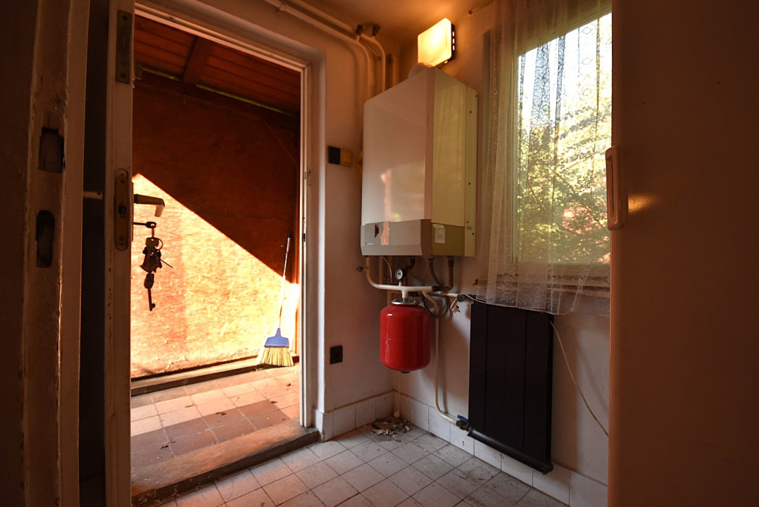 A ház fűtéséről Junkers gázkazán gondoskodik, de a képeken is látható, hogy szerencsére a cserépkályhákat is megőrizték. A két épület külön villanyórával rendelkezik.