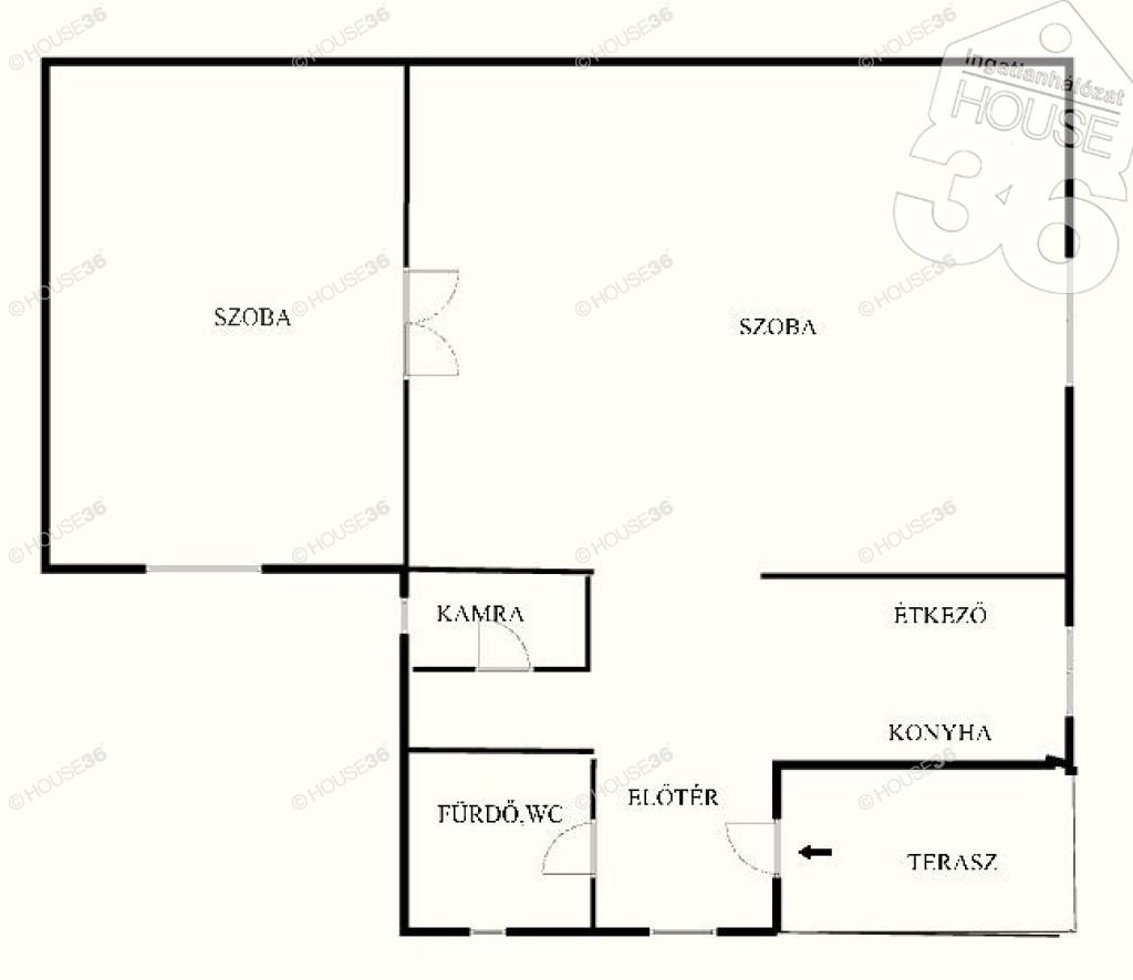 - 61 m2-en egy étkező konyha, fürdőszoba-wc, 2 egymásból nyíló szoba és előszoba található a házban