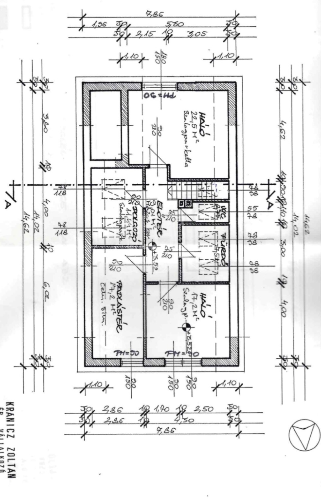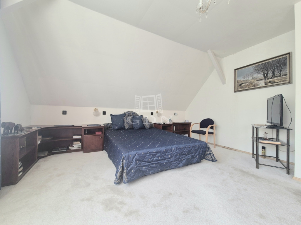 A jól kialakított, kellő belmagassággal rendelkező tetőtérben 4 különnyíló hálószoba, egy sarokkádas fürdőszoba, külön wc-bidével került kialakításra.