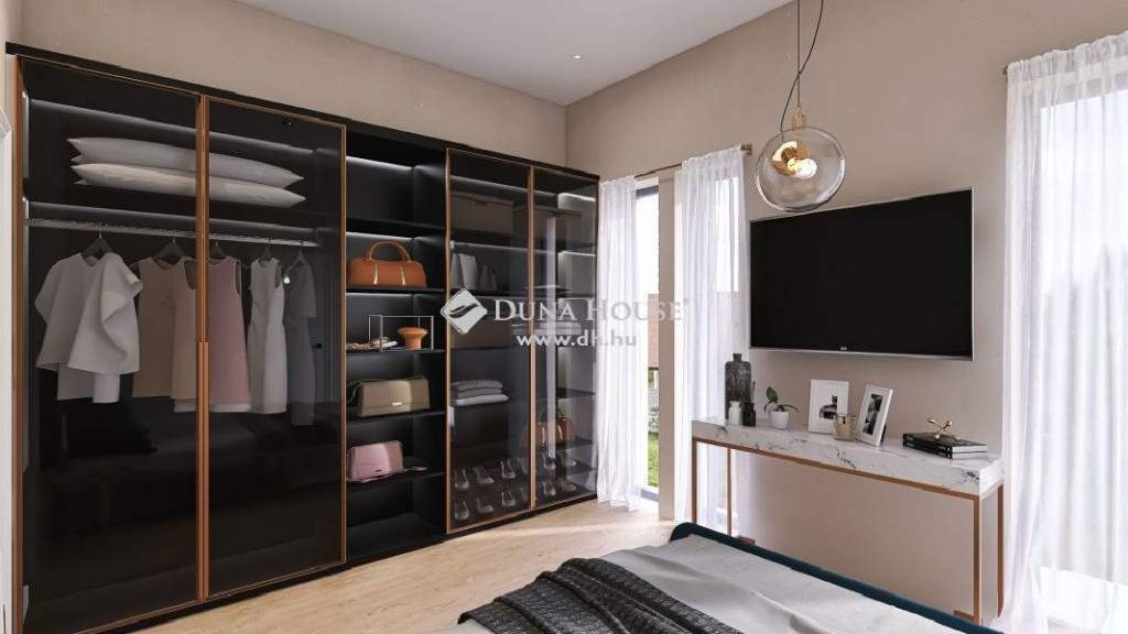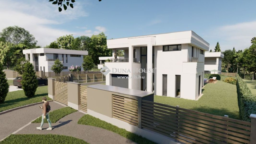 Két szinten 197 nm-es, teraszos Öko házban, 6 szoba, nappali, konyha, étkező, 3 fürdő+WC, külön Wc, önálló garázs és további kiszolgáló helyiségek kerültek kialakításra.
