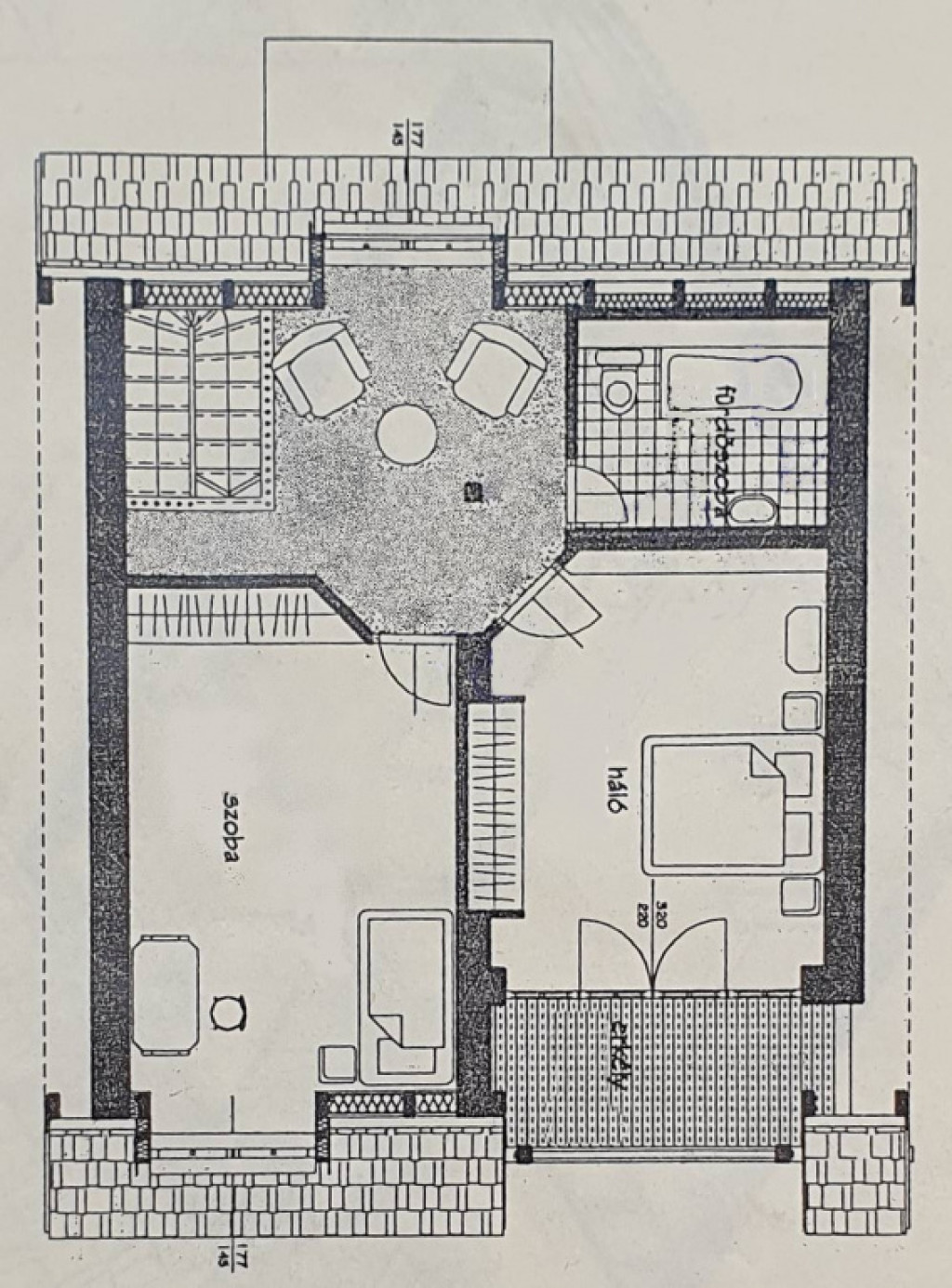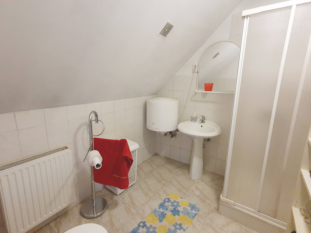 A belső lépcsőn át jutunk az 56 nm-es felső szintre, ahol 2 nagy méretű, 17 és 20 nm-es szoba, erkély, zuhanyzós, wc-s fürdőszoba és egy 12 nm-es dolgozó saroknak kialakítható központi tér.