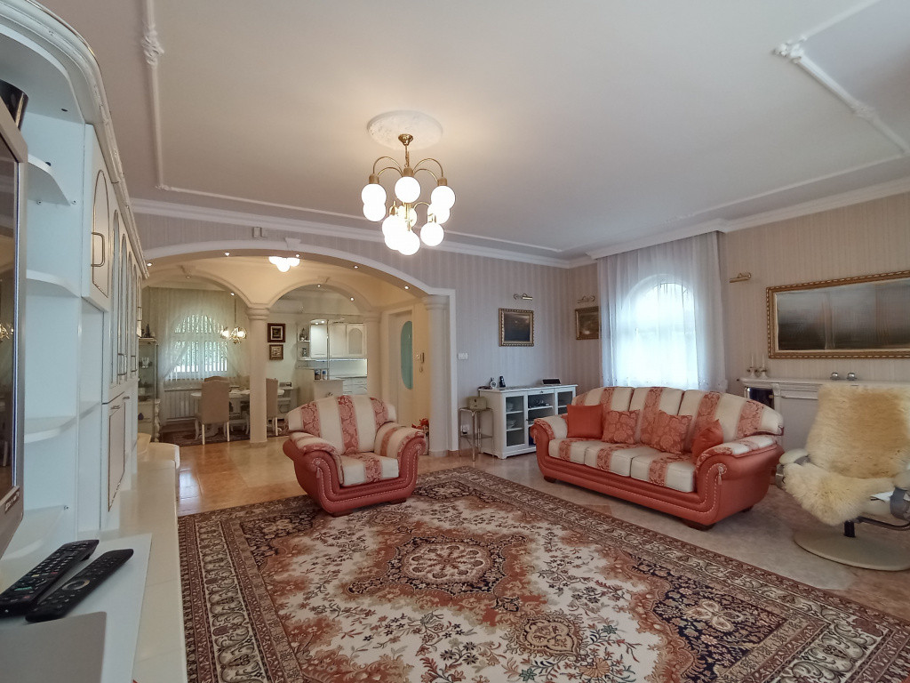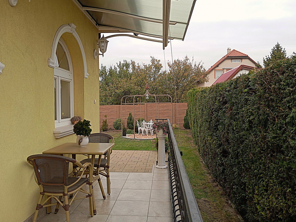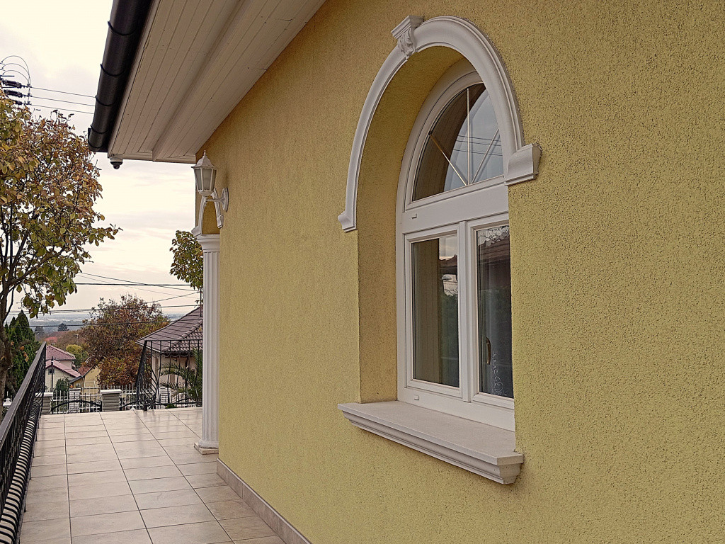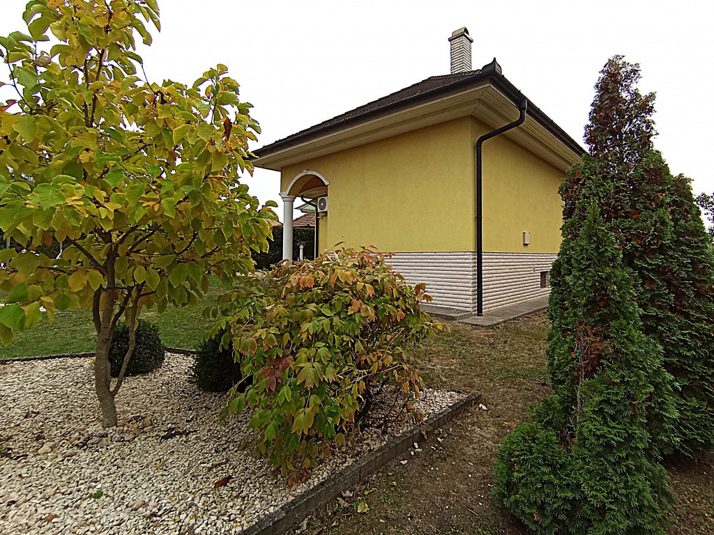 A két lakószintes, duplagarázsos ház 2001-ben épült – igényes építtetői (jelenlegi tulajdonosai) saját célra a legmagasabb színvonalú munkához és a legjobb minőségű anyagok felhasználásához ragaszkodtak. A Ytong főfalak 40 cm-esek, a tetőt Bramac cserép borítja, a korlátok és kerítések kovácsoltvas elemekből készültek. A tökéletes hőérzet komfortját a padlófűtés, a hőleadók és a hűtő-fűtő klíma biztosítja.