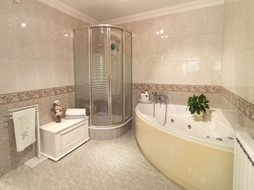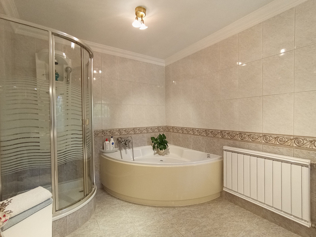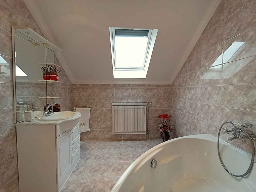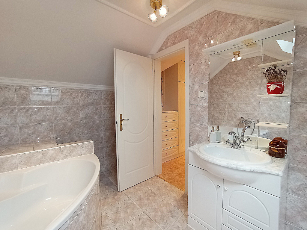 A két lakószintes, duplagarázsos ház 2001-ben épült – igényes építtetői (jelenlegi tulajdonosai) saját célra a legmagasabb színvonalú munkához és a legjobb minőségű anyagok felhasználásához ragaszkodtak. A Ytong főfalak 40 cm-esek, a tetőt Bramac cserép borítja, a korlátok és kerítések kovácsoltvas elemekből készültek. A tökéletes hőérzet komfortját a padlófűtés, a hőleadók és a hűtő-fűtő klíma biztosítja.