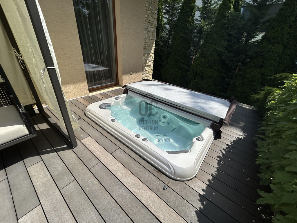 Aztán elérkezik a tél: vastag hótakaró borítja a kertet, a gyerekek hóembert építenek, közben pedig hallatszik a nevetésük, amikor egymást kergetik a friss hóban. Te addig a terasz sarkában gőzölgő jakuzziban pihensz, miközben apró hópelyhek hullanak körülötted.