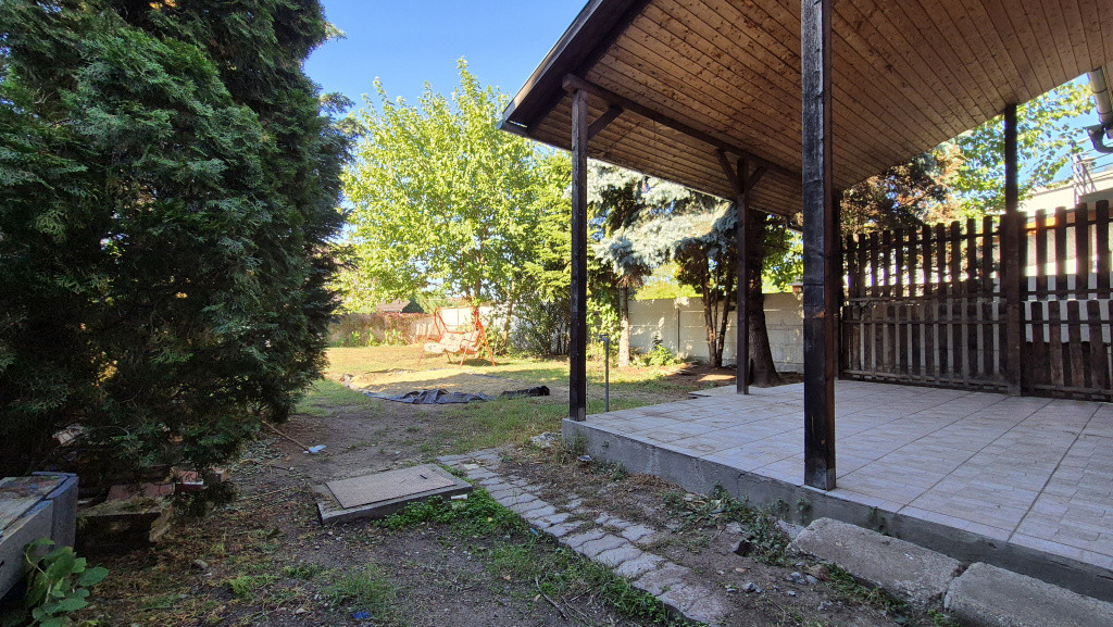 A 441 m²-es telken fedett autóbeálló található, mely alatt egy szerelőakna is kialakításra került.Az udvarral együtt összesen három autó parkolása biztosított, a ház előtt pedig további két autó számára van kényelmes parkolási lehetőség.