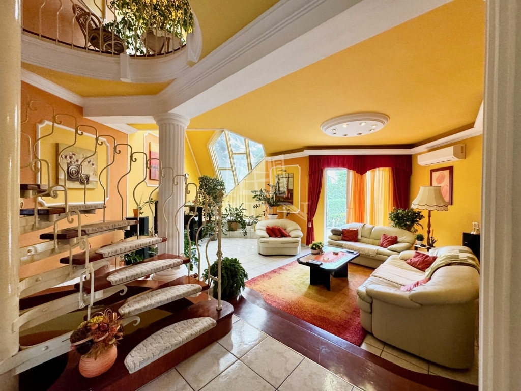 XVII. kerület közkedvelt városrészében, Madárdombon, kertvárosi környezetben, csendes aszfaltozott mellékutcában, 360 nm-es összközműves telken, 1989-ben épült, KIVÁLÓ ADOTTSÁGOKKAL RENDELKEZŐ, nettó 195 nm-es lakóterületű, 3 szintes, 5 szobás, (külön nyíló) dupla komfortos, ablakos konyhás, étkezős, tágas terekkel rendelkező, napos-világos, K-NY-i fekvésű, alacsony fenntartású, gázkazán fűtésű, a nappaliból közvetlen teraszkapcsolatos, jó állapotú, műanyag thermo ablakokkal szerelt, klimatizált, riasztórendszerrel felszerelt ikerház fél, beépített, gépesített konyhával, közvetlenül a házból megközelíthető fűtött garázzsal, mosókonyhával, hobby helyiséggel, finn szaunával, gondozott, öntözőrendszerrel kiépített kerttel eladó!