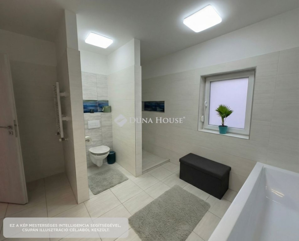 A ház prémium minőségű burkolatokkal, műanyag nyílászárókkal, homlokzati és tetőszigeteléssel, a hálószobákban elektromos redőnyökkel és jogilag új építésű státusszal rendelkezik.