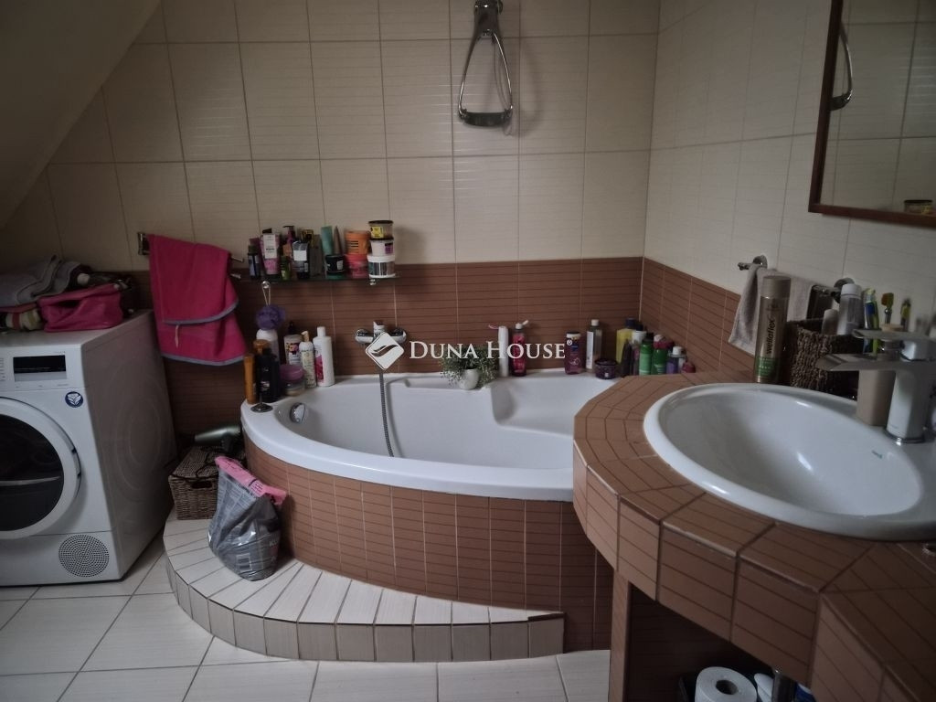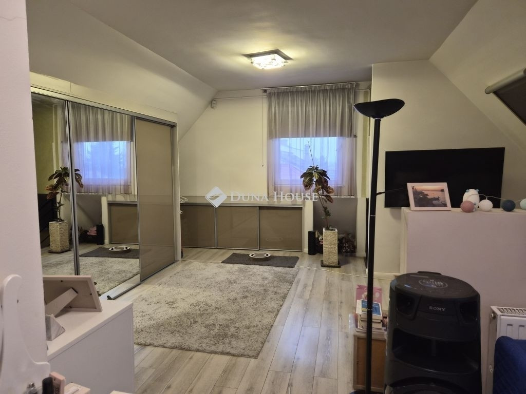 Emelet: egy nagy méretű hálószoba gardróbbal, egy gyerekszoba, egy kisebb dolgozószoba, valamint egy tágas, sarokkádas fürdőszoba WC-vel
