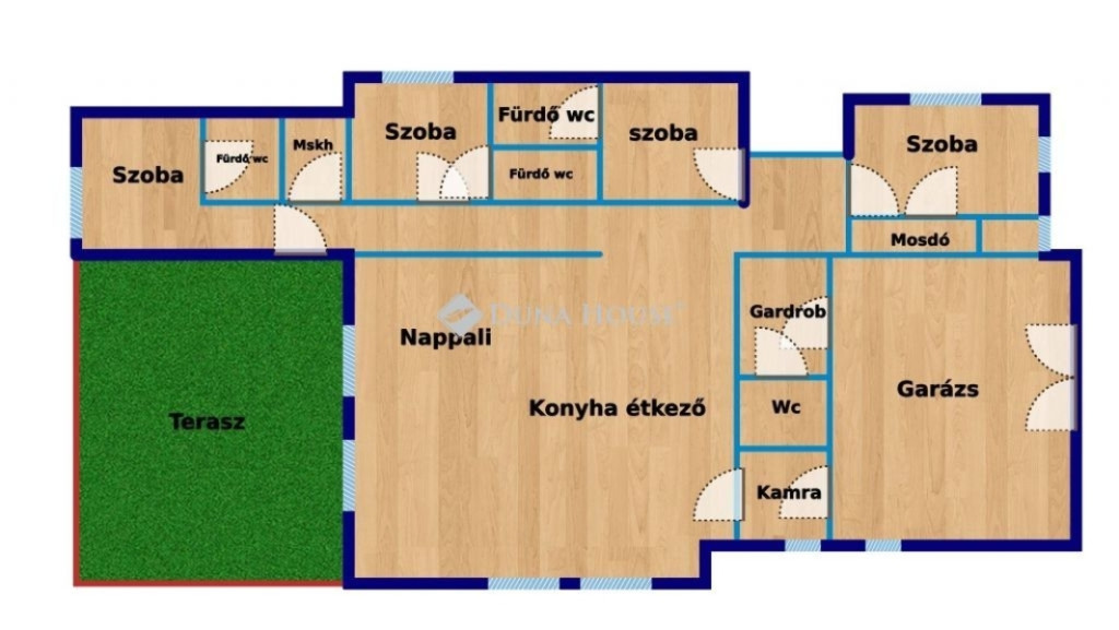 rendszer, helyiségekként külön vezérléssel (távolról is) minden helyiség klimatizált (kivéve a fürdőszobák és a közlekedők).