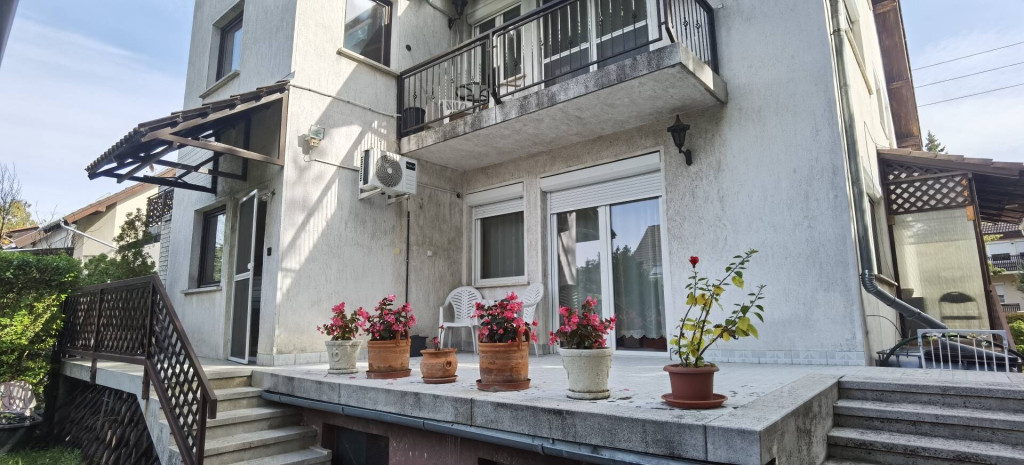 Eladó Budapest a XVII. kerület, talán legkedveltebb kertvárosi részen, Madárdomb városrészében eladó egy 4 szintes, 3 külön lakásból álló, kiváló elosztású, sok lehetőséget rejtő ikerházfél, dupla garázzsal, tárolókkal és gondozott kerttel.