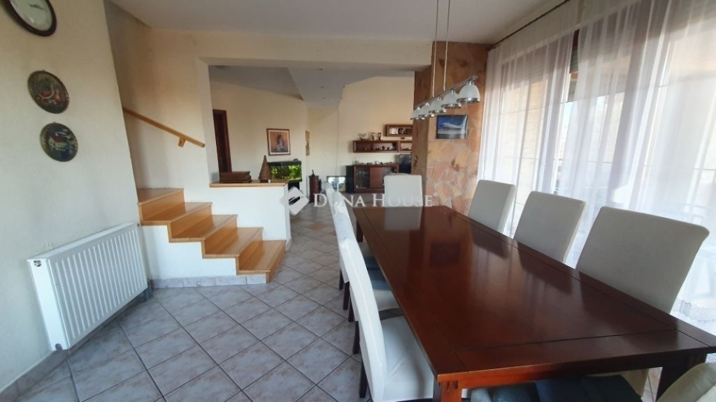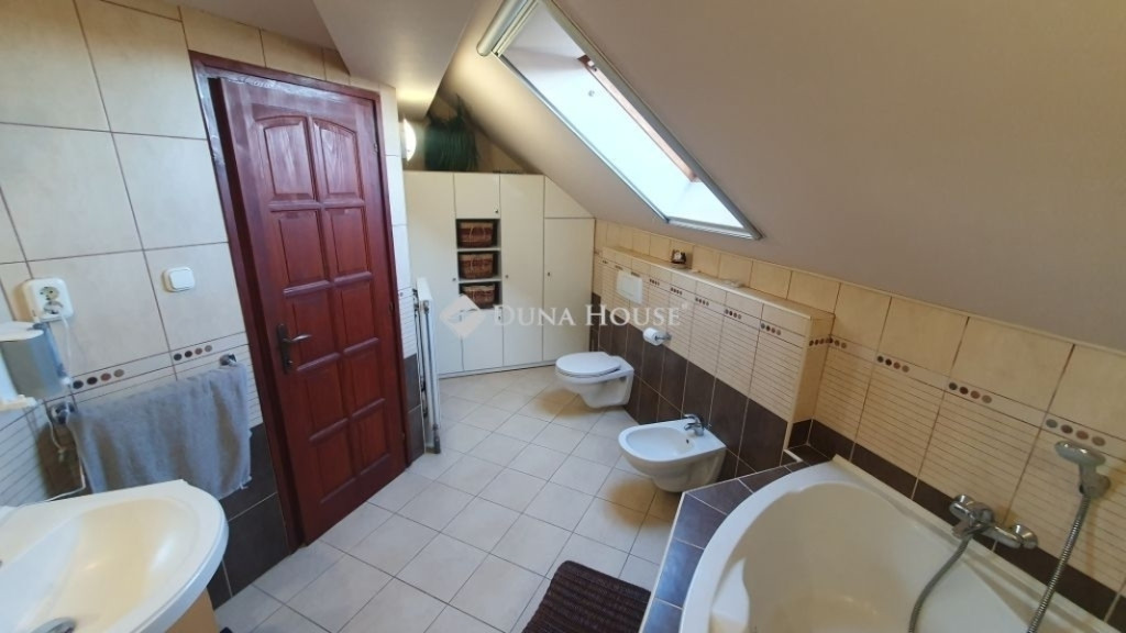 A XVII. kerületben Rákoscsabán, önálló körbejárható, 898 m2-es telekkel rendelkező, 2 generáció együtt élésére alkalmas, 2 külön bejáratú lakással rendelkező, medencés, napelemes családi házat ajánlok szíves figyelmébe.Az ingatlan sok extrával: medencével, kerti tavacskával, szép karbantartott kerttel, teraszokkal, 2 állásos garázzsal, napelemmel, klímával, riasztóval, elektromos kapuval van felszerelve. A kertben van egy gyűrűs kút szivattyúval ellátva amelyről a kert locsolása megoldható.Az épület esztétikai és műszaki szempontból is jó állapotban van, 2000-ben épült, B 38 - as téglából, 3 cm felfújt szigeteléssel, plusz vakolattal.2021- ben napelemek kerültek felszerelésre 9 kW-os inverterrel.Hő és hangszigetelt fanyílászárok vannak thermoplan üvegezéssel , a tetőtérben Velux nyílászárókkal felszerelve.Összesen 299 m2-es a lakótér a házban, a két lakásban együttesen számolva.Alaprajzát tekintve remek elosztású, hiszen a 2 lakás teljesen külön bejáratú , valamint a szobák mindkét ingatlanban külön nyílnak , tágas kényelmes terekkel rendelkeznek.A nagyobb lakás összesen 215 m2-es, 5 szobás, dupla-komfortos, teraszos.A belső két szint tökéletesen elválasztja a nappali részt és a privát területeket, így erősítve az otthon többfunkciós karakterét.A földszinti részen egy belmagasságú, átriumos nappali teraszkapcsolattal, étkezős konyhával,fürdő + WC, kamra, háztartási helyiség, előtér került kialakításra.A felső szinten a közlekedőrészből nyílik 4 szoba, nagy sarokkádas fürdőszoba + WC -vel, valamint 2 gardróbhelyiség van kialakítva, és helyet kapott egy dolgozósarok rész is.A másik lakás 84 m2 , 3 szobás, teraszos, jó állapotú , szintén kényelmes méretű étkezős konyhával, kamrával, fürdő + WC , előszoba helyiségekkel van kialakítva.Több hűtő-fűtő klíma is van felszerelve az ingatlanokban, akár fűtés kiegészítésként , illetve a nyári időszakban is kellemes hőérzetet tud biztosítani az ott lakók számára.A ház riasztóval felszerelt.A kert szépen karbantartott, ahol helyet kapott egy fedett szaletli is, ami a medence közelében helyezkedik el.A ház részben alápincézett (73 m2), kétállásos garázs és tárolóhelyiségek is lettek kialakítva.Itt található a ház fűtését és meleg víz előállítását biztosító gépészet is, lakásonként külön- külön kondenzációs kazánnal és indirekt tároló a meleg víznek.A csendes, rendezett környezetben lévő jó állapotú családi házba a telekre, térkövezett felületen lehet beállni elektromos kapunyitással és további gépkocsik számára is van beállási lehetőség.A vételár részét képezi a konyhabútor, a klímák , illetve minden egyéb berendezés ami megállapodás tárgyát képezheti.A környék ellátottsága kiváló, orvosi rendelő, posta , bevásárlási lehetőség , vonatállomás , iskola, óvoda elérhető. Autóval az M0-ás , és Örs vezér tere gyorsan megközelíthető.Érdeklődésével és megtekintési szándékával várom megtisztelő hívását.