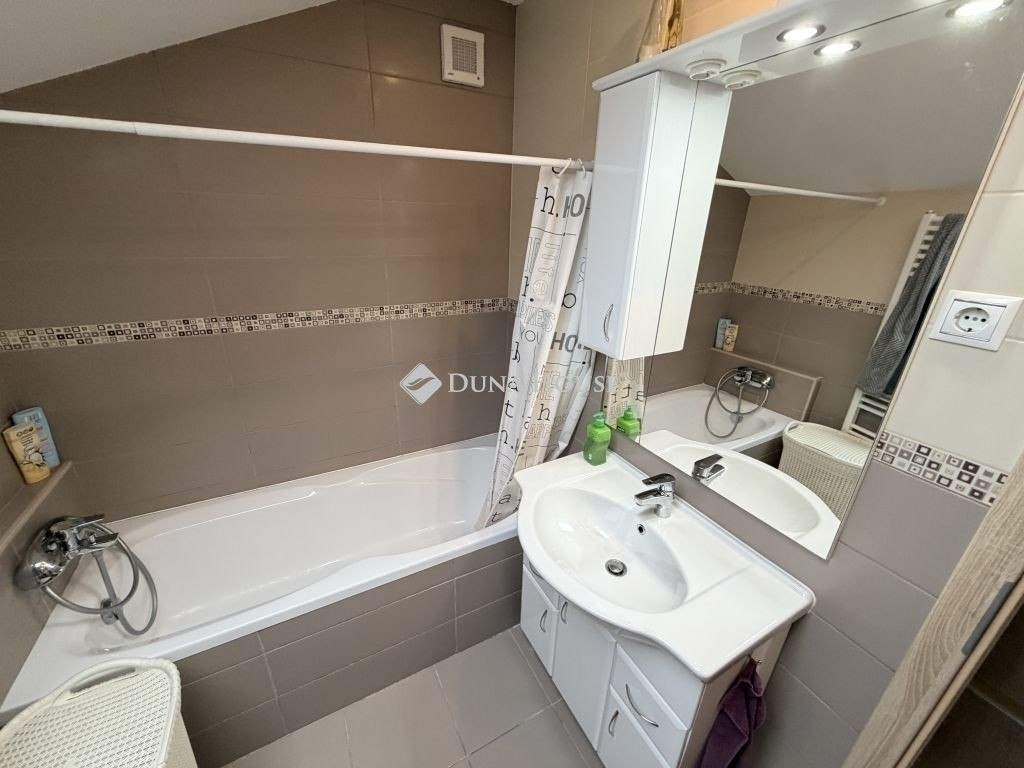 Az alsó szinten található egy hálószoba is, zuhanyzós fürdőszoba WC-vel, háztartási helyiség, és egy kamra is. Az emeleten található 3 hálószoba, egy kádas fürdőszoba, a kényelemérzetet pedig a közlekedőben elhelyezett a klíma növeli.