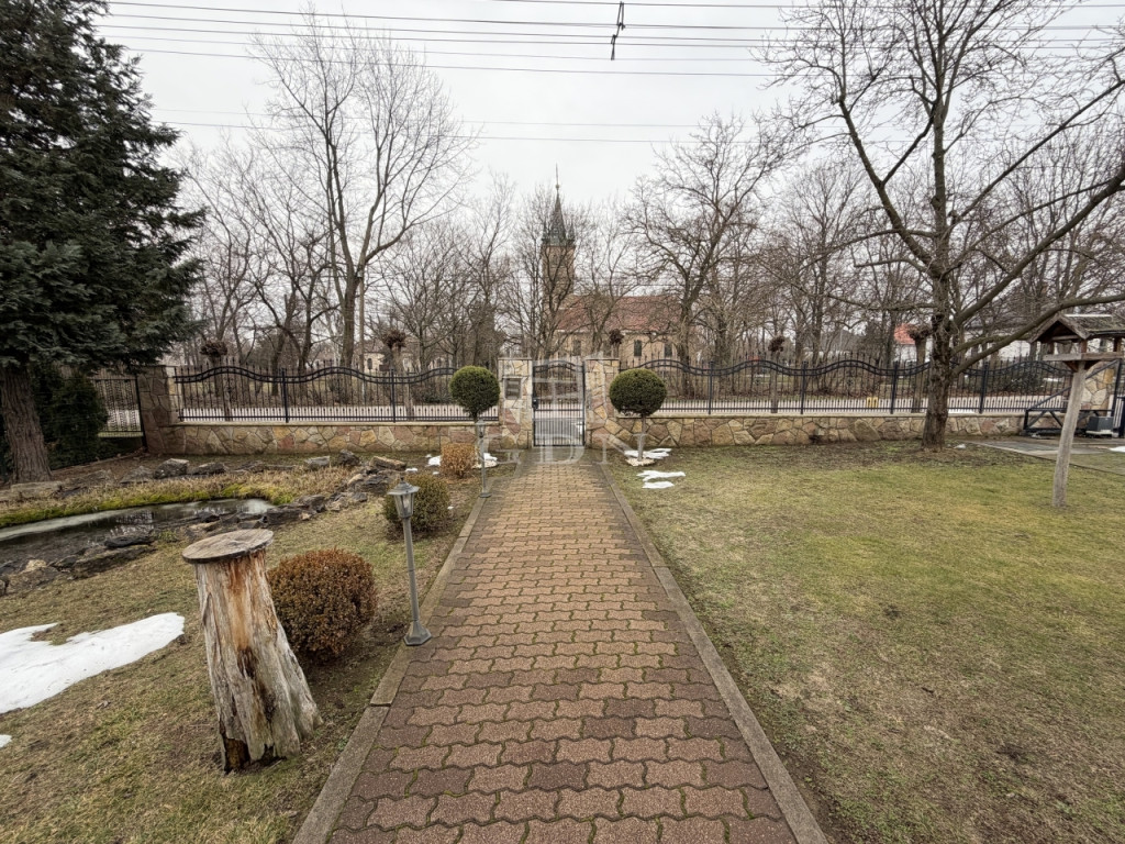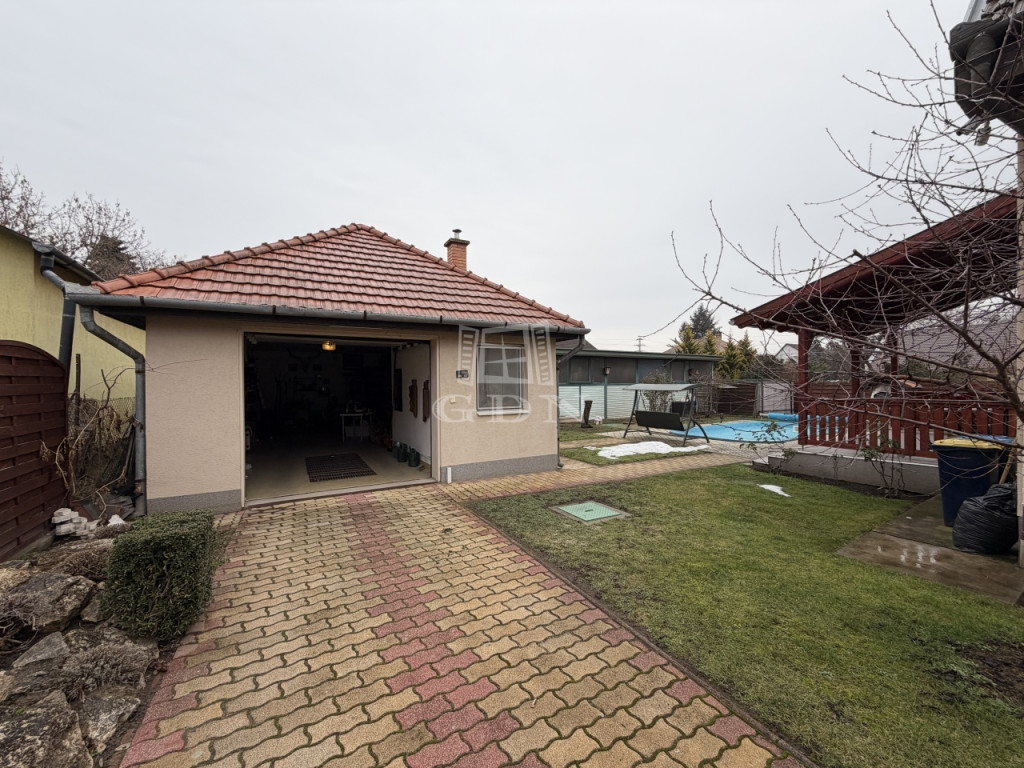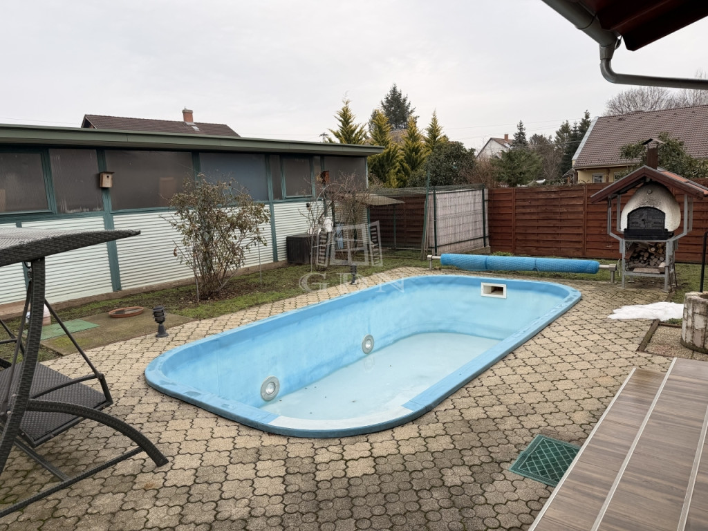 Fűthető medence (6 m x 3 m gépészettel együtt) van az udvarban, ahol található még egy kétállásos fűthető garázs elektromos ajtóval szerelve, valamint egy 100 nm-es műhely is.