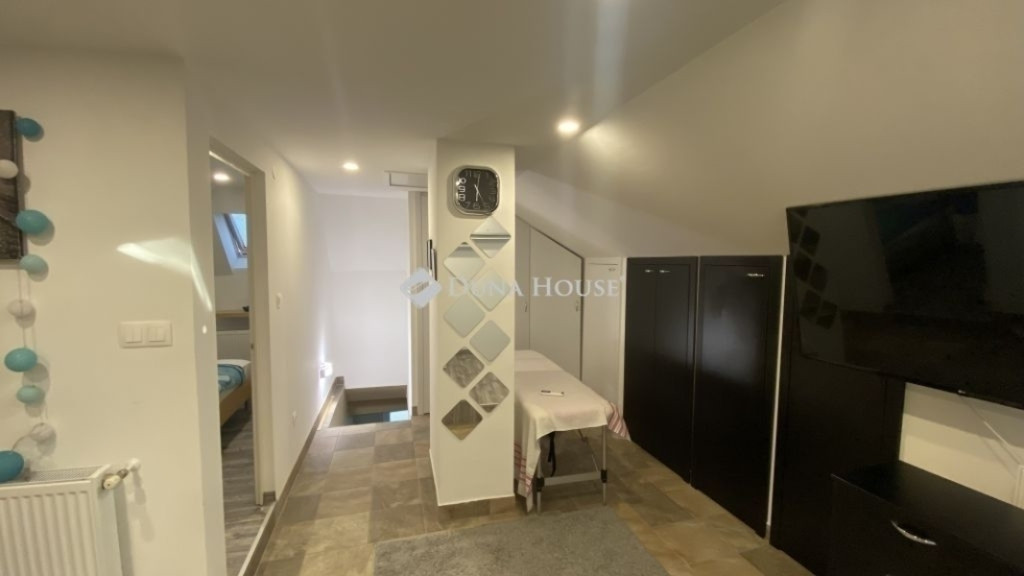 Beépített tetőtér: nappali, konyha, szoba, fürdőszoba + WC, közlekedő