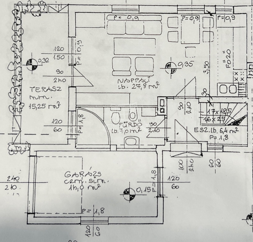 Fűtése: kondenzációs cirkó gázkazán, alsó szinten padlófűtés