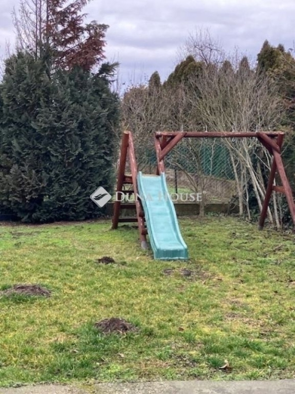 Kertben a gyerekek számára fajátszótér, felnőtteknek árnyékos terasz nyújt kikapcsolódást.