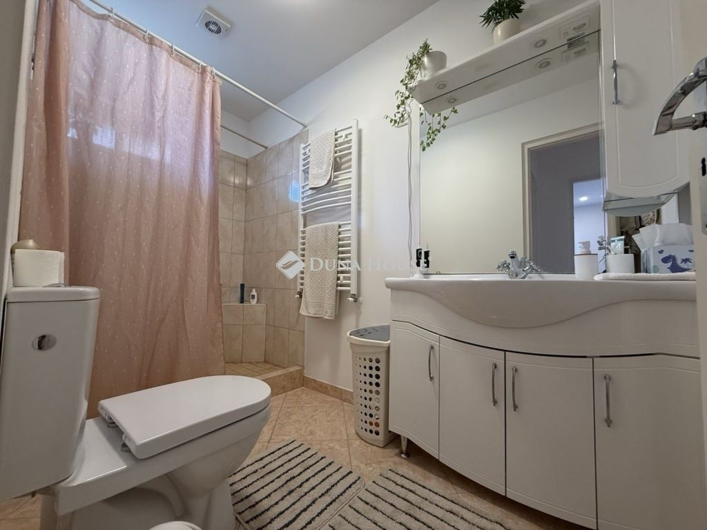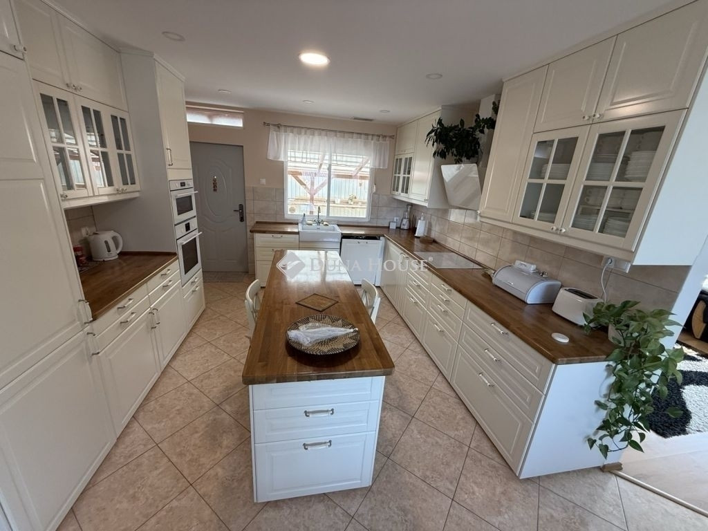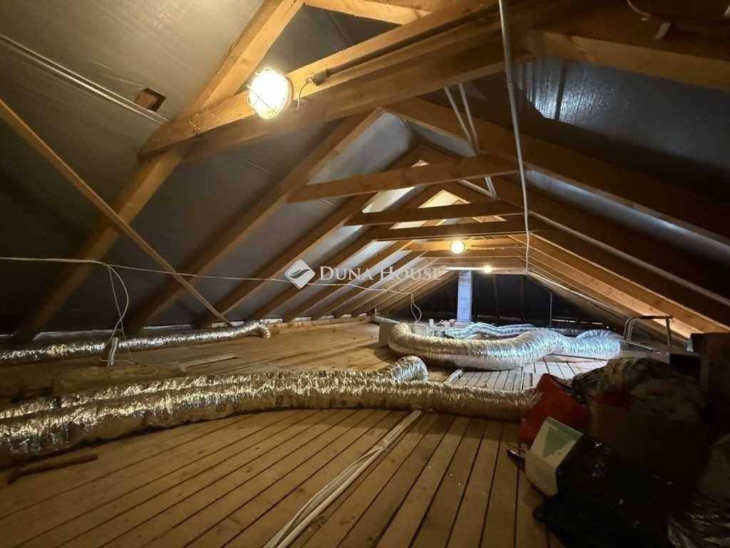 Különleges, energiatakarékos családi ház eladó a 17. kerületben, Rákoscsabán német gerendavázas technológiával építve!Budapest XVII. kerületének csendes, rendezett részén eladásra kínálunk egy nettó 112 m²-es, önálló családi házat, mely egyedülálló, Németországban alkalmazott gerendavázas építési móddal készült. Hasonló házak Salzburg és környékén is megtalálhatók, bizonyítva a technológia tartósságát és megbízhatóságát.Szerkezet és szigetelésAz épület fő sarkain és a nyílászárók mellett 15×15 cm-es gerendák, a közbenső tartóelemek 7,5×15 cm-es méretűek, 60 cm-enként elhelyezve. A fal- és födémszerkezet 15 cm kőzetgyapot szigetelést kapott, hőhídmentesítő habbal ragasztva. Erre került további 5 cm Dryvit hőszigetelés, így a főfalak vastagsága 34 cm, a válaszfalaké 22 cm. Az épület kialakítása praktikus USA tolópaneles nyílászárókkal valósult meg.Fűtés-hűtés és rezsiA komfortot ipari légcsatornás klíma biztosítja, mely fűt, hűt, légcserél és párát szabályoz. A fűtés kombi cirkóval történik, radiátorokkal és padlófűtéssel, a hangulatról pedig fa tüzelésű kandalló gondoskodik. A 10 kW-os szaldóelszámolású napelemrendszer jelentősen túlteljesíti az energiaigényt, így a ház rezsije rendkívül kedvező: víz, gáz, csatorna és szemétdíj együtt mindössze 18-20 ezer Ft/hó.Telek és melléképületA 566 m²-es, parkosított telek igazi nyugalom szigete. A kertben található egy 37 m²-es, klimatizált, fűtött műhely, WC-vel és mosogatóval kiválóan alkalmas hobbira, vállalkozásra vagy akár külön lakrész kialakítására is.Főbb jellemzők:- Nettó 112 m², nappali + 3 hálószoba, 2 fürdőszoba- Német gerendavázas szerkezet, 34 cm-es főfalak, 22 cm-es válaszfalak- Ipari légcsatornás klíma (fűtés, hűtés, légcsere, páraszabályozás)- 10 kW-os szaldós napelemrendszer- Kombi cirkó, radiátor + padlófűtés, fa tüzelésű kandalló- 37 m²-es klimatizált, fűtött műhely mellékhelyiséggel- 566 m²-es, gondozott telek- Rendkívül alacsony rezsi (18-20 ezer Ft/hó)- A+++ besorolású energetikával rendelkezik- Tehermentes, hitelezhetőEz az ingatlan tökéletes választás mindazoknak, akik modern, energiatakarékos és kiváló hőszigetelésű otthont keresnek, ahol a fenntartási költségek hosszú távon is minimálisak.