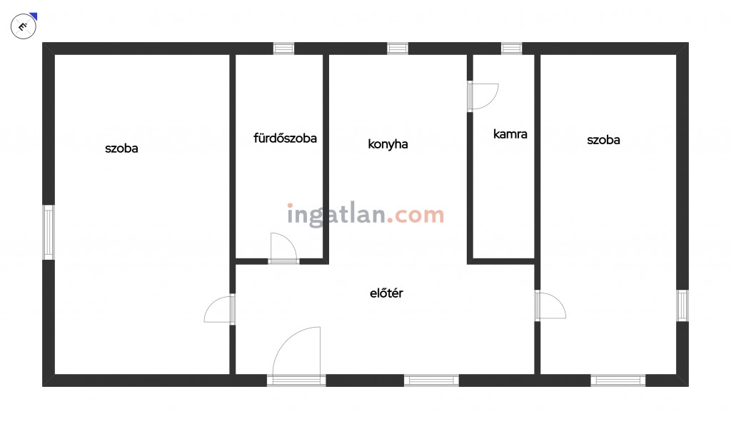 A ház jelenlegi elrendezése két tágas szobát (19nm és 16,5nm +galéria), konyhát, fürdőszobát és előszobát tartalmaz, szerkezete stabil, bővíthetősége és alakíthatósága révén pedig kiváló lehetőséget kínál új tulajdonosa számára egyéni igényeinek megvalósítására.
