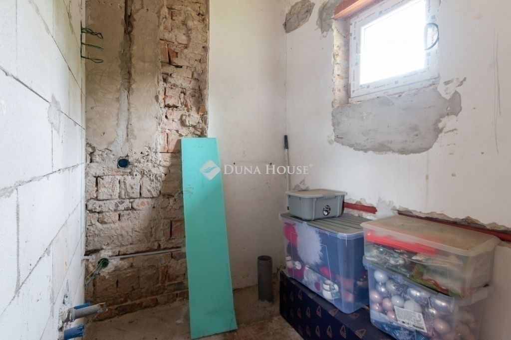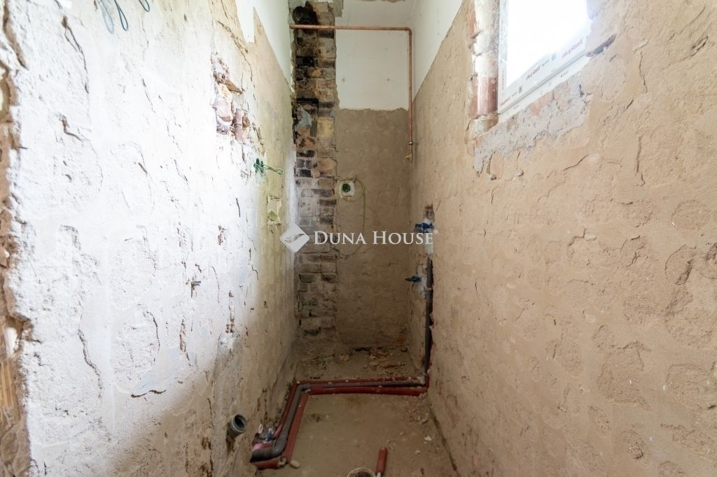 A hátsó, 37 m²-es épület felújítása már megkezdődött – új tető, ablakok, villany- és vízvezetékek elkészültek, a fűtés kialakítása az új tulajdonosra vár.