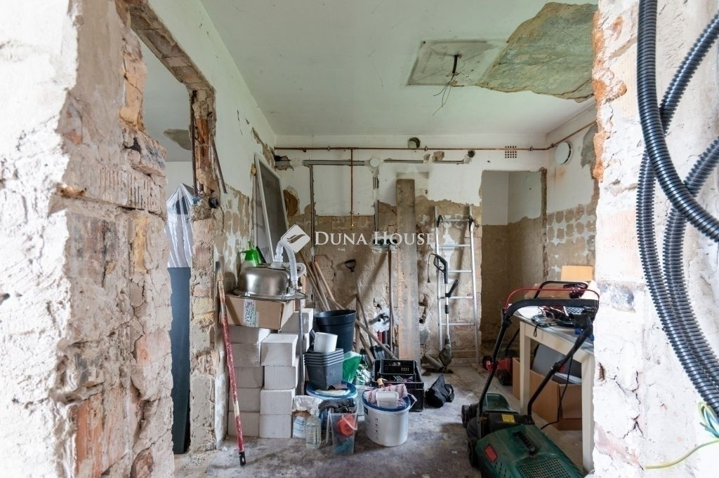 A hátsó, 37 m²-es épület felújítása már megkezdődött – új tető, ablakok, villany- és vízvezetékek elkészültek, a fűtés kialakítása az új tulajdonosra vár.
