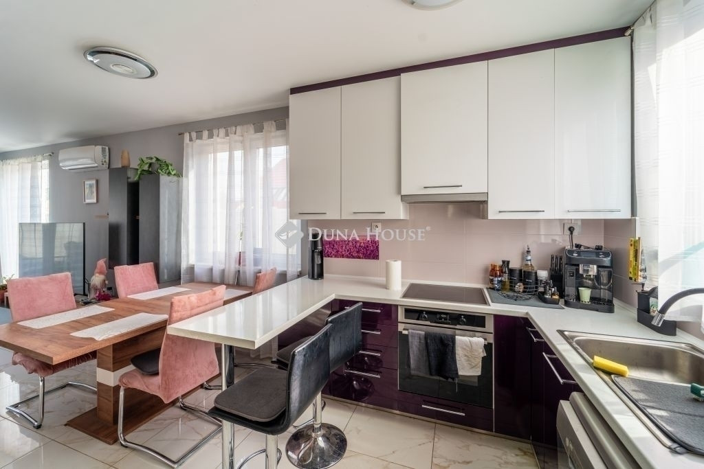 Az otthon melegét és modern stílusát tökéletesen kiegészíti az amerikai konyha, amely nemcsak a főzés, hanem a közös pillanatok ideális helyszíne is. A nagy ablakfelületeknek és az épület nyugati fekvésének köszönhetően a helyiségek egész nap fényben úsznak, így a ház mindig világos, barátságos atmoszférát áraszt. Az építés során kiemelt figyelmet kapott a minőségi anyaghasználat és a letisztult, időtálló design, így az új tulajdonosnak valóban csak a beköltözés élményére kell koncentrálnia.