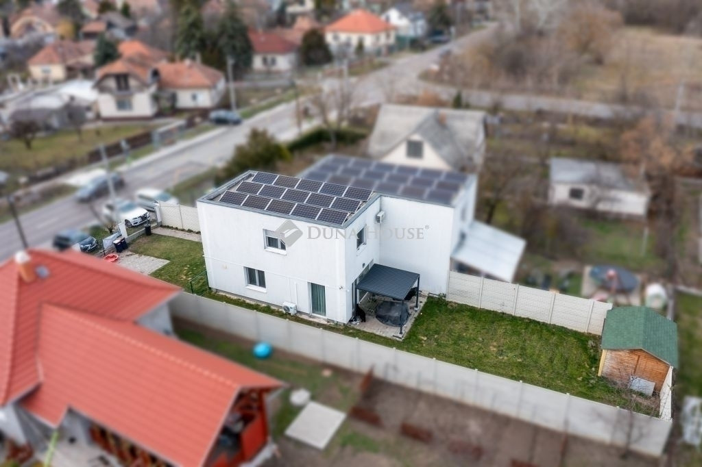 Az ingatlan egyik legnagyobb előnye, hogy teljesen gázmentes: a fűtés, hűtés és az elektromos energiaellátás egy nagy teljesítményű napelemes rendszerrel megoldott, így a rezsiköltség rendkívül alacsony. A komfortérzetet mindkét szinten prémium klímaberendezések, a földszinten pedig elektromos redőnyök növelik.