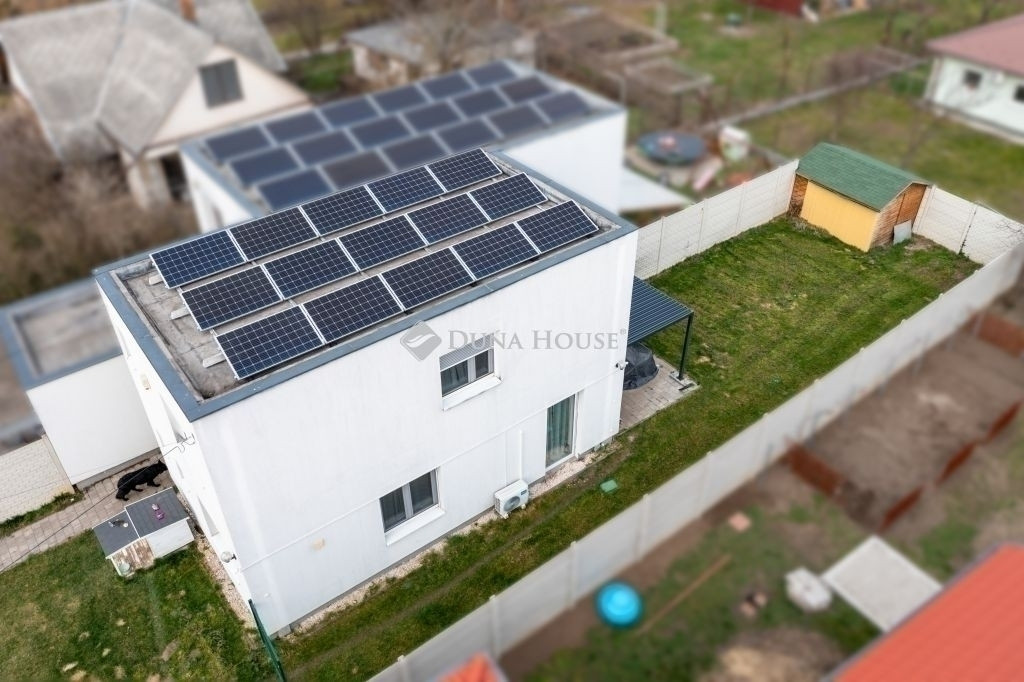 Az ingatlan egyik legnagyobb előnye, hogy teljesen gázmentes: a fűtés, hűtés és az elektromos energiaellátás egy nagy teljesítményű napelemes rendszerrel megoldott, így a rezsiköltség rendkívül alacsony. A komfortérzetet mindkét szinten prémium klímaberendezések, a földszinten pedig elektromos redőnyök növelik.