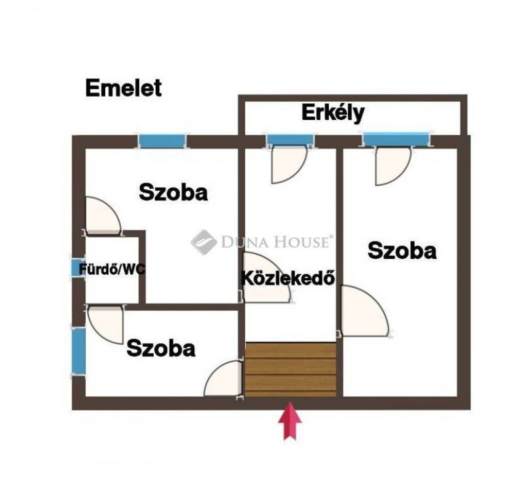 Emelet: Két és fél szoba, amelyek közül kettőből közvetlen kijárat nyílik az erkélyre, plusz egy második tágas fürdőszoba.