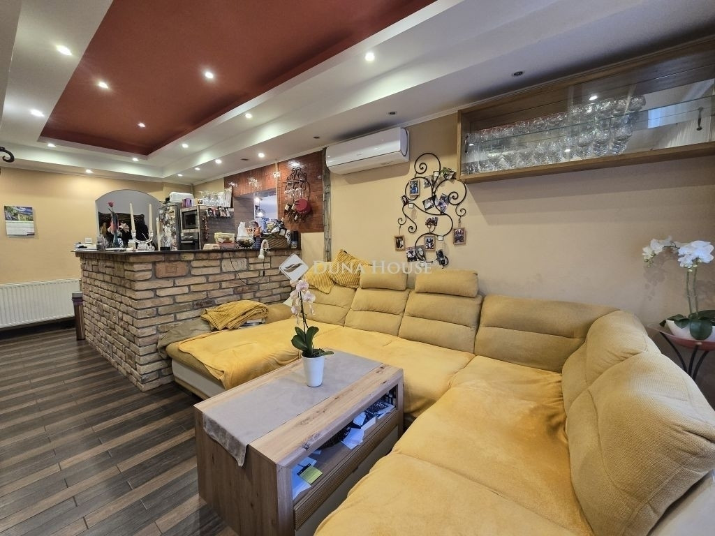 Kétgenerációs! Felújított! Hatalmas terasszal!Eladó a 18. kerület méltán kedvelt részén, Újpéteritelepen, csendes, nyugodt környezetben, egy kétgenerációs ( 90nm + 40nm ) körbejárható ingatlanpár, 657 nm-es telken, hatalmas 40nm-es fedett terasszal, garázzsal, fedett beállóval, pincével!A nagyobbik ház felújított, a burkolatok, a víz- és villanyhálózat teljes körű cseréje megtörtént, fa és műanyag thermo nyílászárók kerültek beszerelésre.A tágas fürdő zuhanyzós, és kádas is.A felújításkor különös figyelmet fordítottak az energiatakarékosságra: a külső falak 10 cm-es, a tetőtér pedig 20 cm-es kőzetgyapot szigetelést kapott, ami jelentősen hozzájárul a fűtésköltség csökkentéséhez. A fűtésről néhány éves gázcirkó és és ez étkezőben elhelyezett elektromos padlófűtés gondoskodik, a nyári hőség elviseléséről pedig klímaberendezés. A vételár részét képezi a jakuzzi, az ülőgarnitúra és a gépesített konyha is.A kisebb ház átlagos állapotban van, ideális lehet idősebb családtagoknak, vagy akár kiadásra is.Az udvar parkosított, térkövezett, ami kiváló lehetőséget biztosít a szabadidős tevékenységekre, a gyerekek biztonságos játszására vagy családi és baráti összejövetelekre egyaránt. Gépkocsiját garázsban tudhatja biztonságban, de az udvaron fedett beálló is található.Tehát, ha egy multifunkcionális, többgenerációs otthont keres zöld környezetben, akkor ne hagyja ki ezt a lehetőséget!Megtekintésért kérem hívjon, akár hétvégén is!