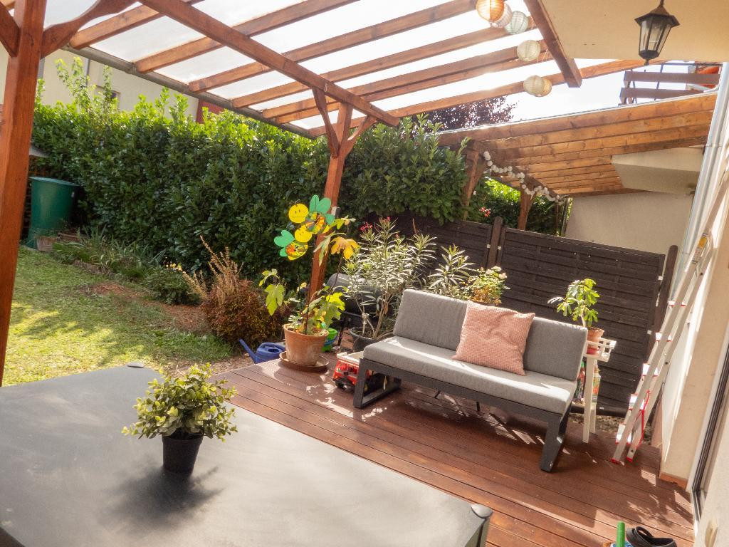 Idilli hátsókert nagy faházzal - 20 nm fedett terasz