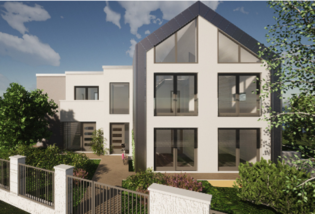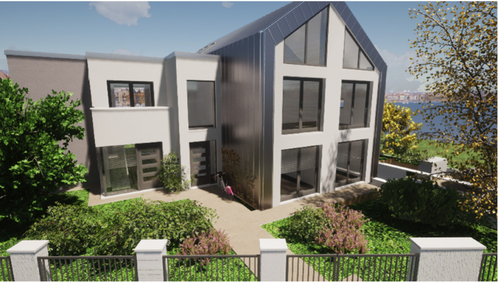 A 750 m²-es telken szabadonálló beépítésű ház található, amely összesen 290 m² hasznos lakóterülettel rendelkezik. A pince közel 140 m², benne három autó számára teremgarázs, tárolók, kerékpártároló és gépészeti helyiségek kaptak helyet. Az épület modern, letisztult építészeti megjelenését a lapostetős és magastetős tömegek kombinációja adja, a hatalmas ablakfelületek pedig természetes fényárban úszó tereket ígérnek. A fűtés-hűtés rendszer a tervek szerint hőszivattyúra előkészített, a lapostetőn pedig rejtett napelem-előkészítés tervezett, így a ház hosszú távon is fenntartható és korszerű megoldásokat kínál.