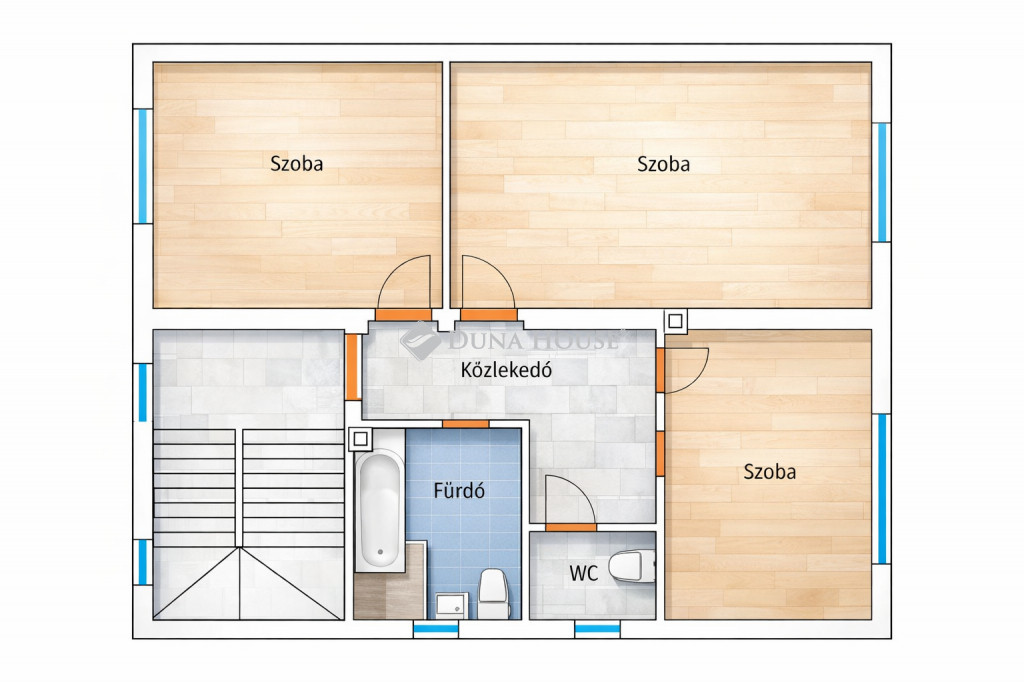 - Padlófűtés a földszinten, radiátorok az emeleten