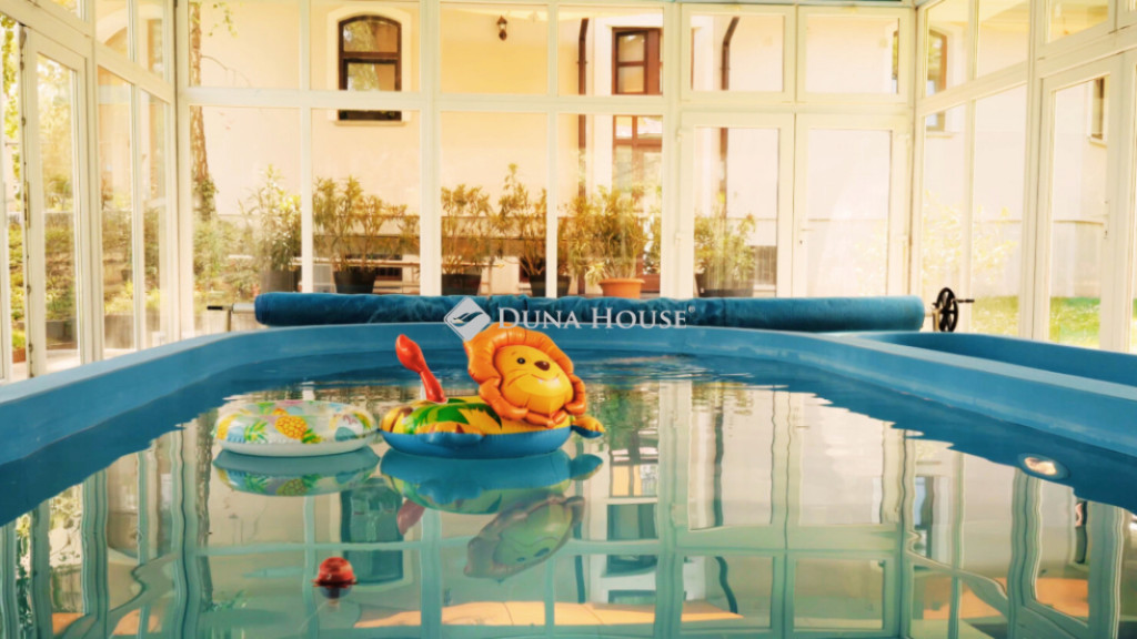 A kerület egyik legcsendesebb zöldövezeti részén eladó ez a négy szintes, 360 m²-es, egyedi tervezésű családi ház, amely egy 1205m²-es, gyönyörűen parkosított telken fekszik, fűthető, fedett úszómedencével.