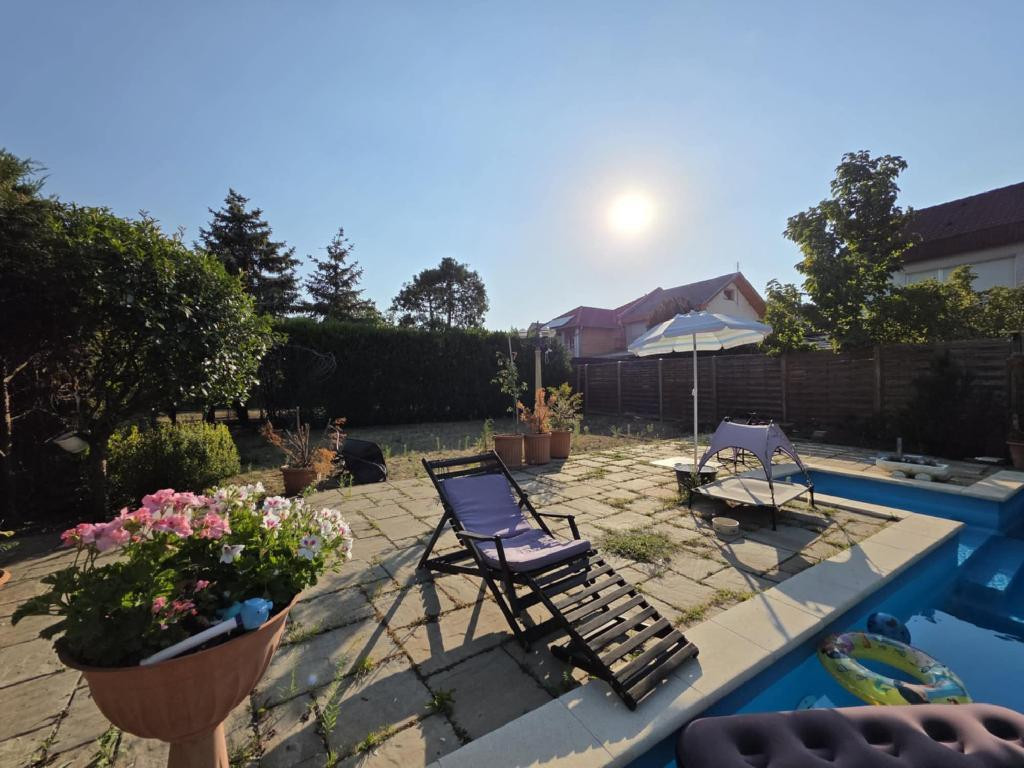 Óriási erkély és terasz Medence a kertben 2 autós kocsibeálló elektromos kapuval 1/1 tulajdon, tehermentes, megbízható bérlő, hosszú távon is maradna.