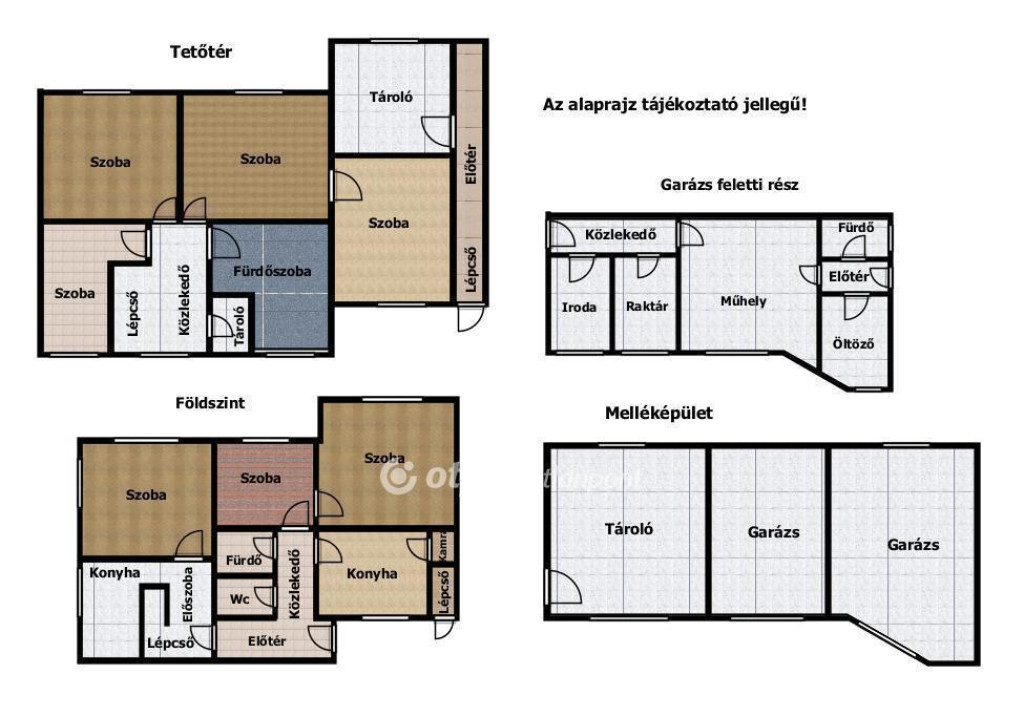 Budapest, XVIII. kerületének Liptáktelep részén ajánlom a figyelmébe ezt a 192 nm-es, 5+2 szobás, 1985-ben épült, felújítandó állapotú, de sok lehetőséget kínáló ingatlant, ami 714 nm-es telken helyezkedik el. Az épület több egymástól leválasztható lakrészből áll, úgy mint a 3 szobás földszinti rész, a tetőtérben található 4 szobás lakrész és a külön megközelíthető tárolószoba. A telken található egy nagyméretű emeletes, téglaépítésű melléképület is, mely az alsó szintjén 3 különálló részre osztott, fent pedig több helységből áll, ami korábban üzleti tevékenységre lett kialakítva. Az ingatlan fűtése korábban gázkazánról működött, ami jelenleg nem üzemképes.
