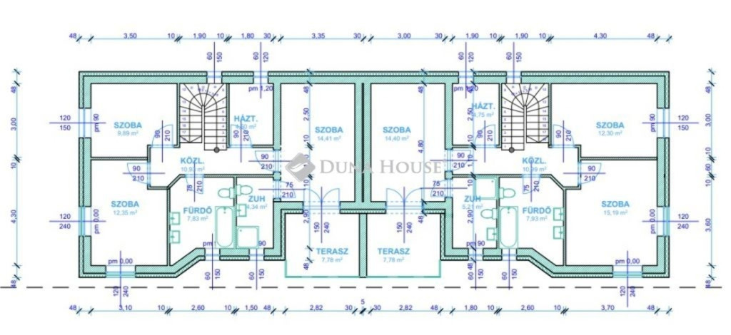 A lakásoknak nincs közös fala, mert a gépkocsitárolóknál kapcsolódnak!