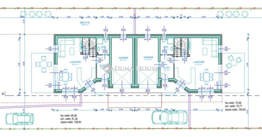 Belsőmajor területén kétlakásos modern ikerház ELADÓ, A lakásoknak nincs közös fala, mert a gépkocsitárolóknál kapcsolódnak!